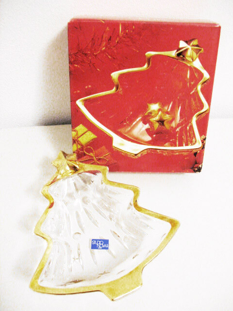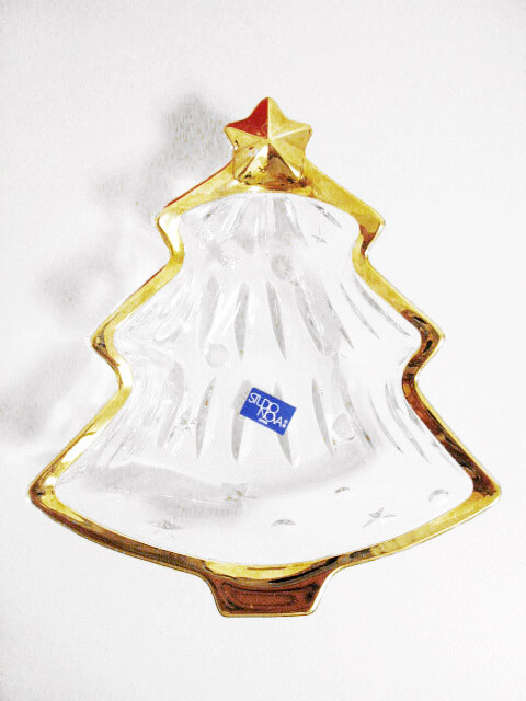 This is a NEW IN BOX Studio Nova holiday dish . Item comes from a smoke/pet free home. Christmas tree shaped star topped clear glass with gold trim width 5.25", height 6" Please ask all questions BEFORE BIDDING/PURCHASING . BE SURE TO CHECK OUT MY OTHER LISTINGS!!! SORRY NO RETURNS/REFUNDS!!! This is a home that practices GREEN living. Packing/shipping materials may be post consumer bags/boxes/containers (ie: cookie/cereal/soap boxes, plastic bags, newspaper, etc.) Reduce waste for a healthier environment. Please recycle.
