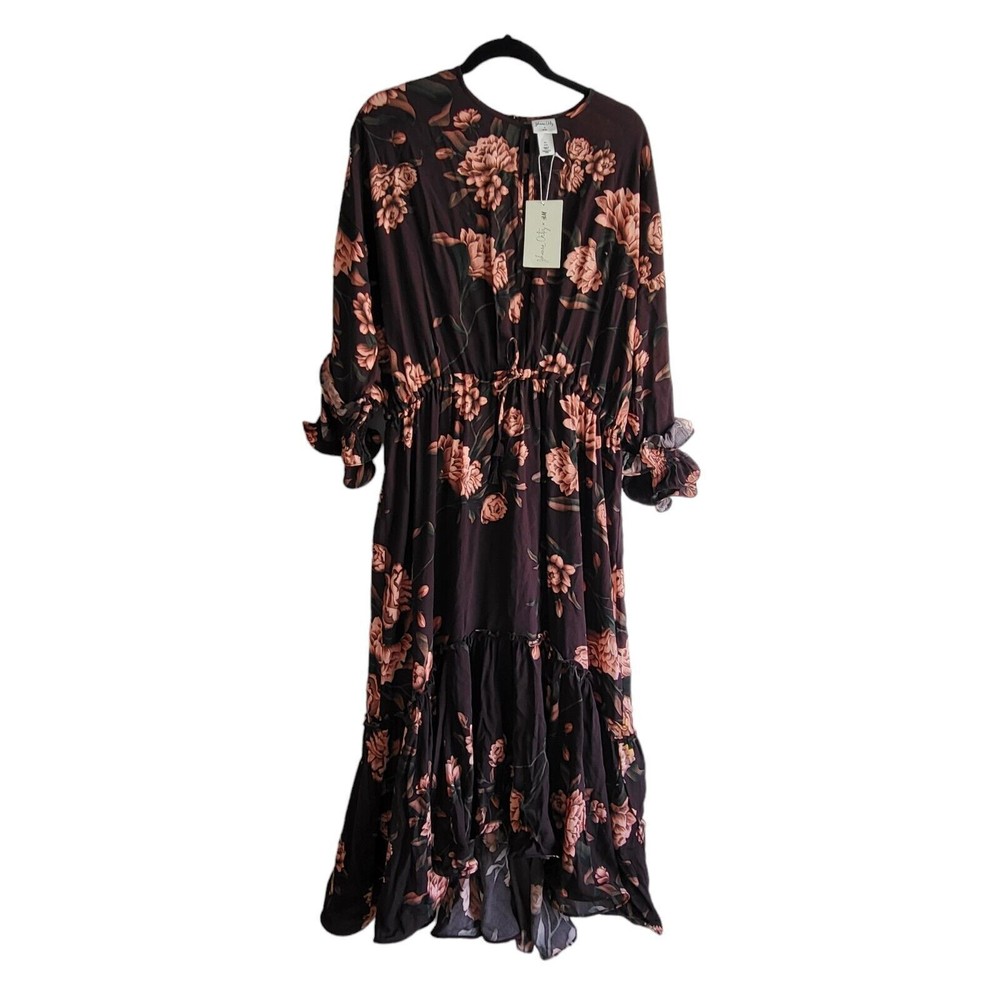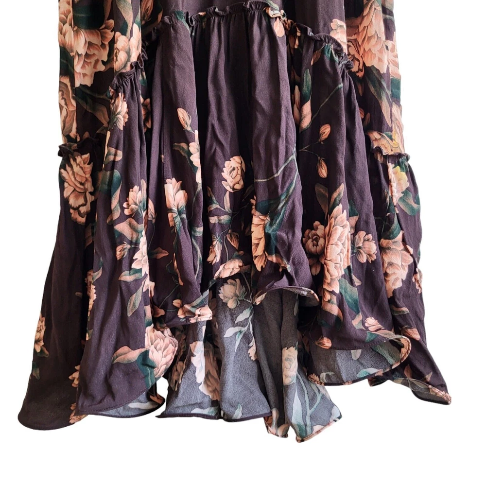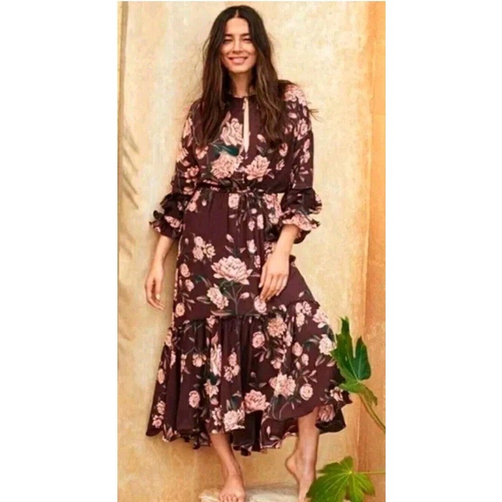 <![CDATA[<div>NEW Johanna Ortiz & H&M Brown Floral Ruffled Dipped Hem High Low Dress Size L Boho bohemian festival Western Country party cowgirl wedding guest bride bridal party cruise brunch