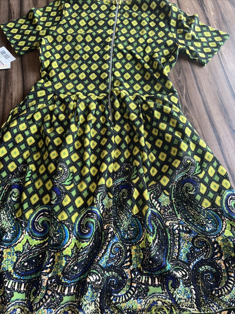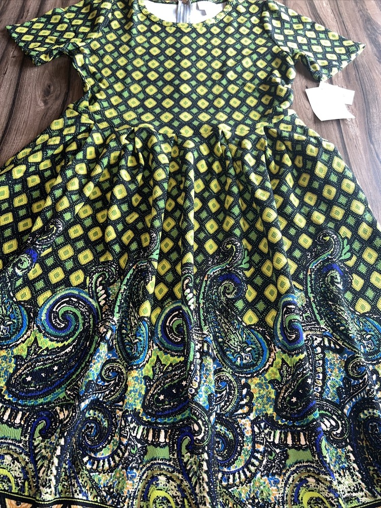 The Amelia dress' stretchy knit fabric is comfortable enough to let you wear the dress all day while having the structure and tailoring that make it sophisticated enough for the office or a fancy night out. The dress features handset box pleats, giving the dress a flowing, full skirt. And before we forget the best part, this dress also has hidden pockets! This dress is everything a girl needs. Major unicorn, rare print! Gorgeous floral Black background with yellow green blue huge Paisley diamonds ornate leaf pattern New with tags! Amazing dress with pockets. Must have for your wardrobe! NEW LuLaRoe Floral Amelia Dress 🦄🌹. Fits 14-16 12-14 Large True unicorn! Condition is New with tags. Shipped with USPS 625/2