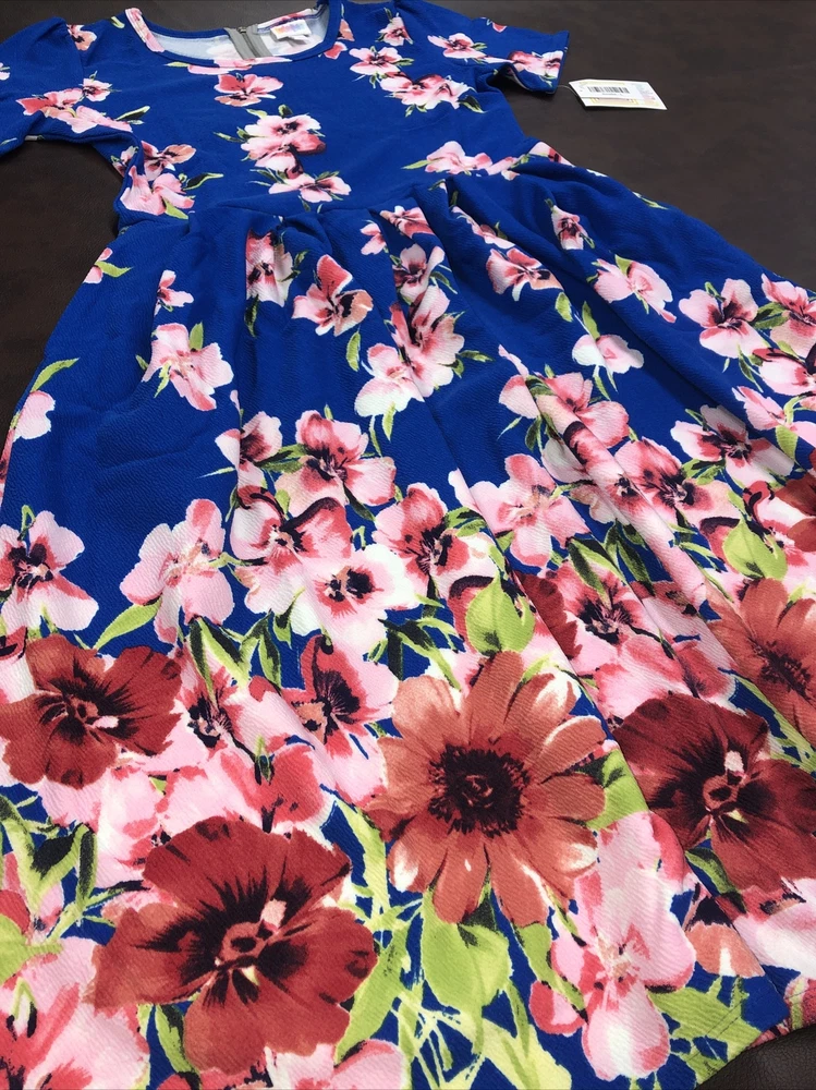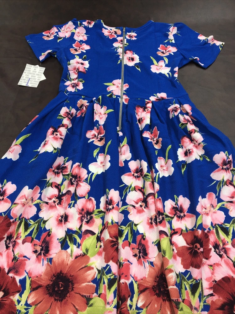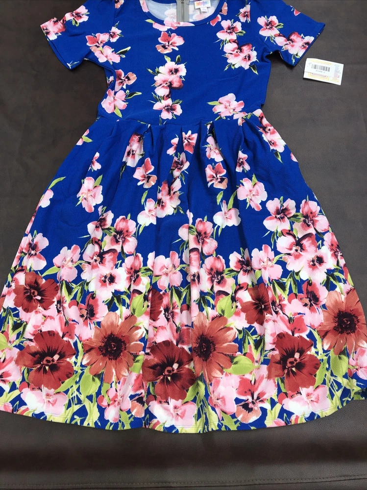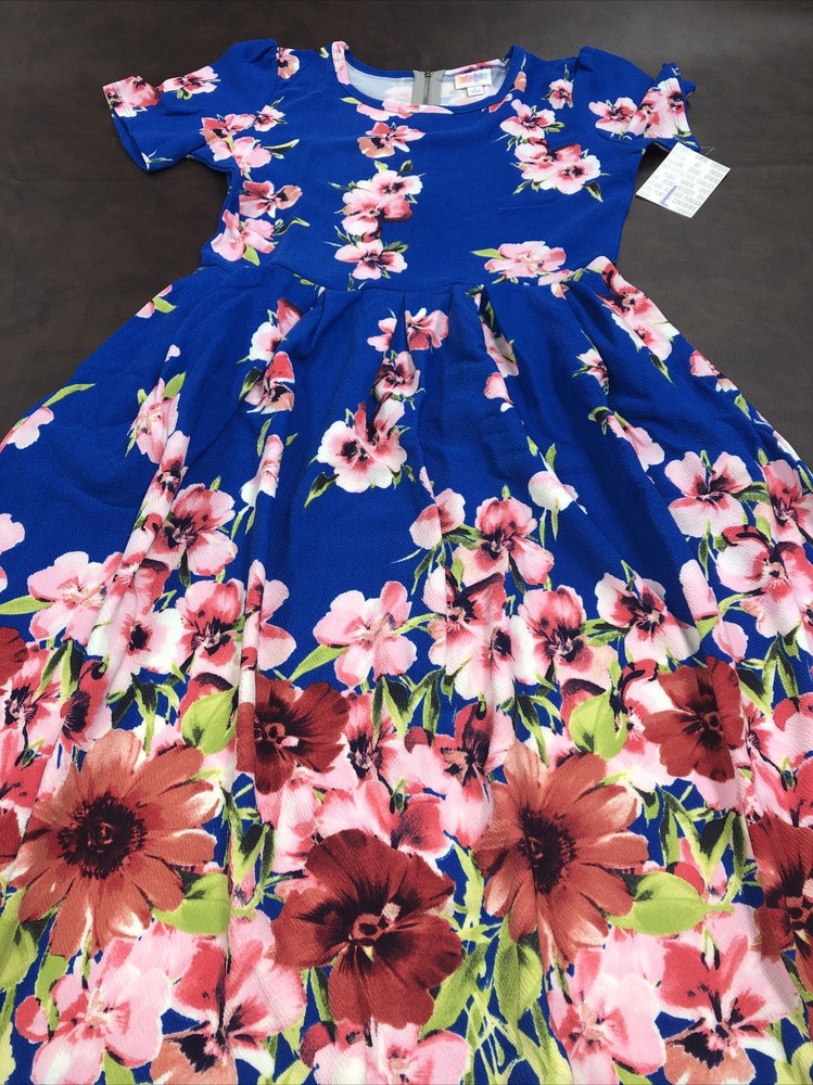 The Amelia dress' stretchy knit fabric is comfortable enough to let you wear the dress all day while having the structure and tailoring that make it sophisticated enough for the office or a fancy night out. The dress features handset box pleats, giving the dress a flowing, full skirt. And before we forget the best part, this dress also has hidden pockets! This dress is everything a girl needs. NEW LuLaRoe Size large, 14/16 Gorgeous Floral Amelia Dress ๐ฆ๐น. Major unicorn! Rare, hard to find print. Beautiful colors! Bright royal blue background with pink, coral cherry blossoms, daisies, sunflowers, pansies, peonies! So stunning! Major unicorn! Condition is New with tags. Shipped with USPS 601 E
