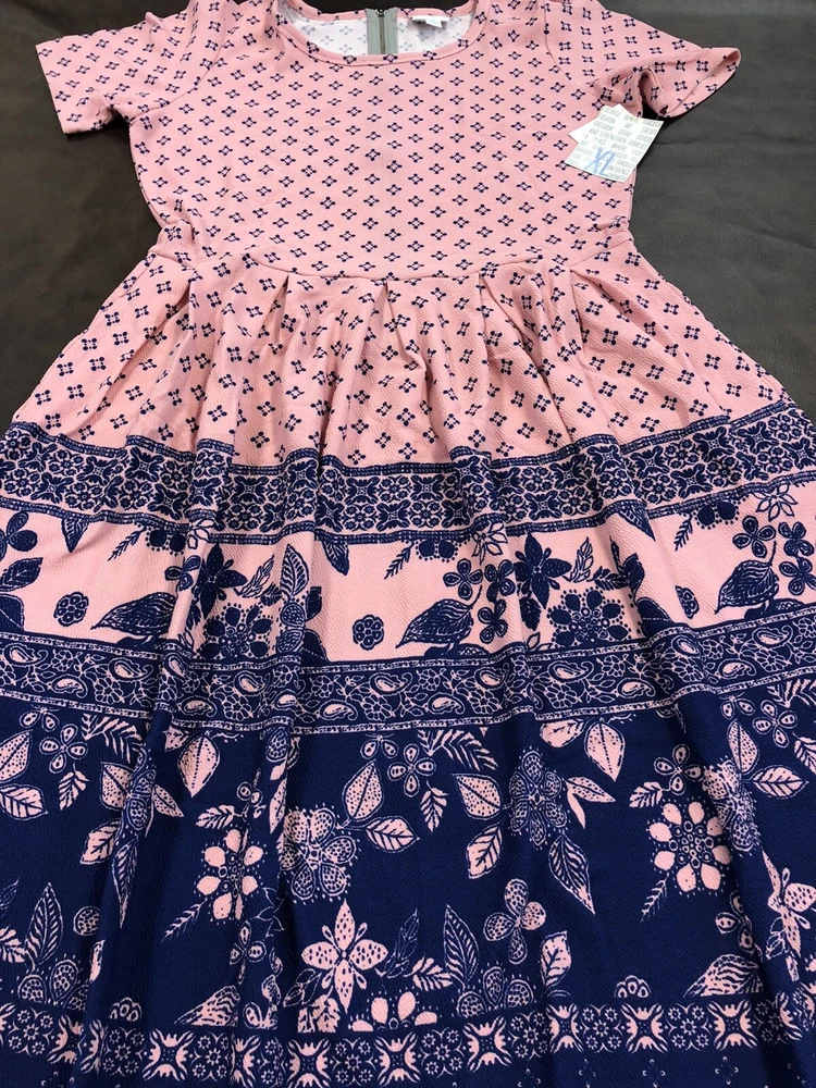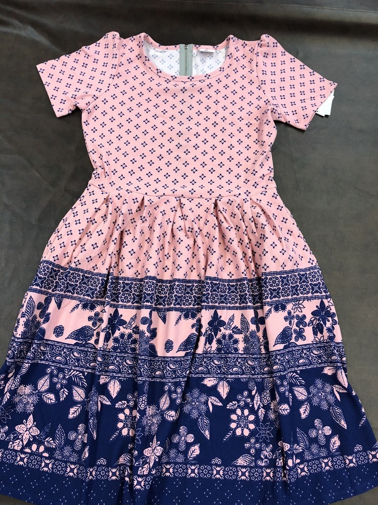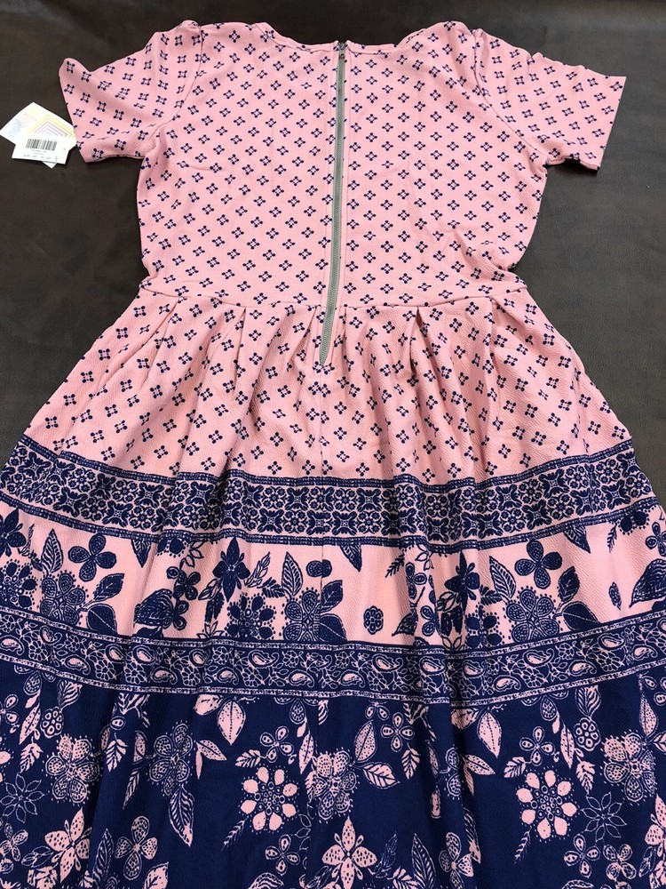 The Amelia dress' stretchy knit fabric is comfortable enough to let you wear the dress all day while having the structure and tailoring that make it sophisticated enough for the office or a fancy night out. The dress features handset box pleats, giving the dress a flowing, full skirt. And before we forget the best part, this dress also has hidden pockets! This dress is everything a girl needs. Major unicorn, rare print! Gorgeous floral Pink background with blue ornate leaf and floral pattern New with tags! Amazing dress with pockets. Must have for your wardrobe! NEW LuLaRoe Floral Amelia Dress 🦄🌹. Fits 14-16 12-14 Large True unicorn! Condition is New with tags. Shipped with USPS U57/7 B