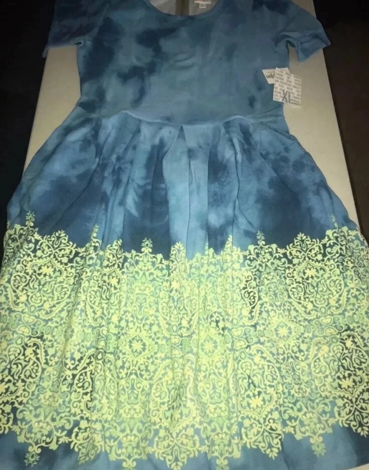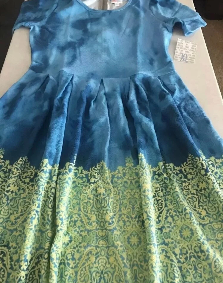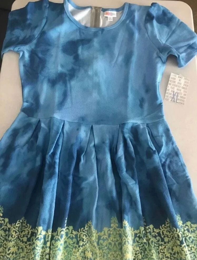 Lularoe XL extra large NWT 16/18 18/20 Women’s Amelia blue tie dye with amazing dip pattern with large ornate paisley damask whimsical floral, ombré fade dip print is sure to impress Blue and yellow Major unicorn! The stretchy knit fabric makes it supremely comfy to wear, while the construction of the dress—including the pleated skirt—makes the look sophisticated and put together. Short sleeves and falls to around the knee. Beautiful Pleated Dress New with tags. Please message with questions, thanks! This is for a size XL, 18/20 16/18 Lularoe items available Azure, Cassie, Jill, Lola, Lucy, Madison, perfect t, classic t, olive, Christy, Morgan, Elizabeth, Amelia, leggings, Nicole, Emily, Marly, Maria, maxi, Olivia, Chloe, Caroline, Sarah, Amber, Lucille, Debra, Stevie, Kristina, Melissa, Riley, Nicki, Presley Moto, Hudson, Iris, Liv, Jessie, Shirley, Randy, Deanne, Amber, Carly and much more. 4/19 (4)