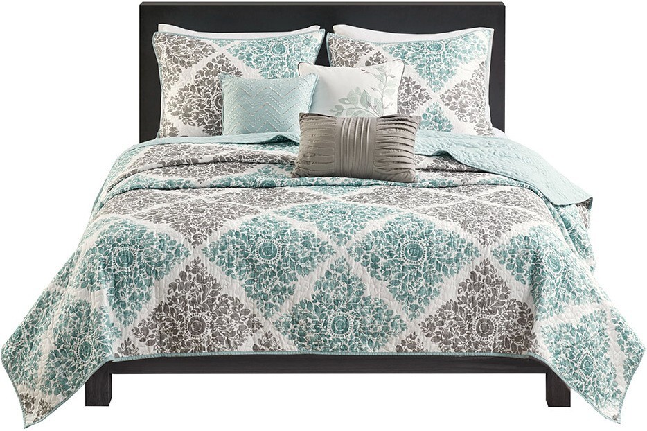 Up for Auction is this Beautiful Unused, NEW in ORIGINAL PACKING is this 6 piece Coverlet set by Madison Park “Claire” Collection which is Polyester Microfiber Printed Quilted 6Pcs Coverlet Set In Aqua MP13-1421 Details & Overview · U nique crisscross design with a small leaf print inside each diamond · Pops of blue for a touch of color · Three decorative pillows with embroidery and fabric manipulation · OEKO-TEX certified for quality comfort and wellness Introduce a breath of fresh style into your space with the Madison Park Claire 6 Piece Reversible Coverlet Set. Featuring a distinctive crisscross design, this set is adorned with a small leaf print inside each diamond, adding a unique touch to your bedroom decor. The pops of blue bring just the right amount of color, effortlessly blending with your existing neutral space. To add the perfect finishing touches, three decorative pillows are included, showcasing exquisite embroidery and fabric manipulation. Crafted with your well-being in mind, this bedding set is OEKO-TEX certified, ensuring it is free from any harmful substances or chemicals. Upgrade your bedding collection and indulge in unparalleled comfort and timeless elegance with the Madison Park Claire 6 Piece Reversible Coverlet Set DUE TO EXCESSIVE "CUSTOMER BIDDING ERRORS" WE WILL NO LONGER BE CANCELING TRANSACTIONS OR BIDS AND THESE ITEMS WILL GO TO UNPAID ITEM CASES TO STRIKE AGAINST YOUR ACCOUNT. PLEASE BE EXTRA CAREFUL WHEN PLACING YOUR BIDS, BOTH AS WHAT YOU ARE BIDDING ON AND THE AMOUNT YOU ARE BIDDING ON! Will Be Happy to Combine shipping, if possible, if asked and then I will send you an updated invoice with shipping changes and please check out my store for tons of other awesome items, you will never know what you may find!! Please ask questions, if needed before bidding. ALL ITEMS ARE AS IS, AND I TRY AND MAKE AN EFFORT TO NOTICE ANY AND ALL DEFECTS IF POSSIBLE. RETURNS ARE NOT ACCEPTED. PLEASE make me an offer I cannot refuse; All REASONABLE offers will be considered. DO NOT BID OR MAKE AN OFFER IF YOU DO NOT INTEND TO BUY!!!