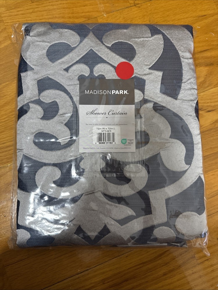 Madison Park Odette Fabric Shower Curtain Lixe Textured Jacquard Shower Curtain in Navy/Silver Brand new in original packaging. Retails for $42 on Amazon or $69 from Macy’s.