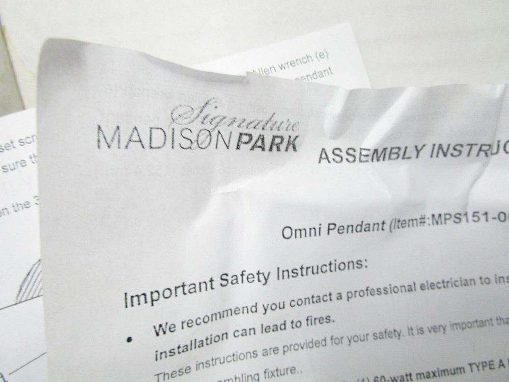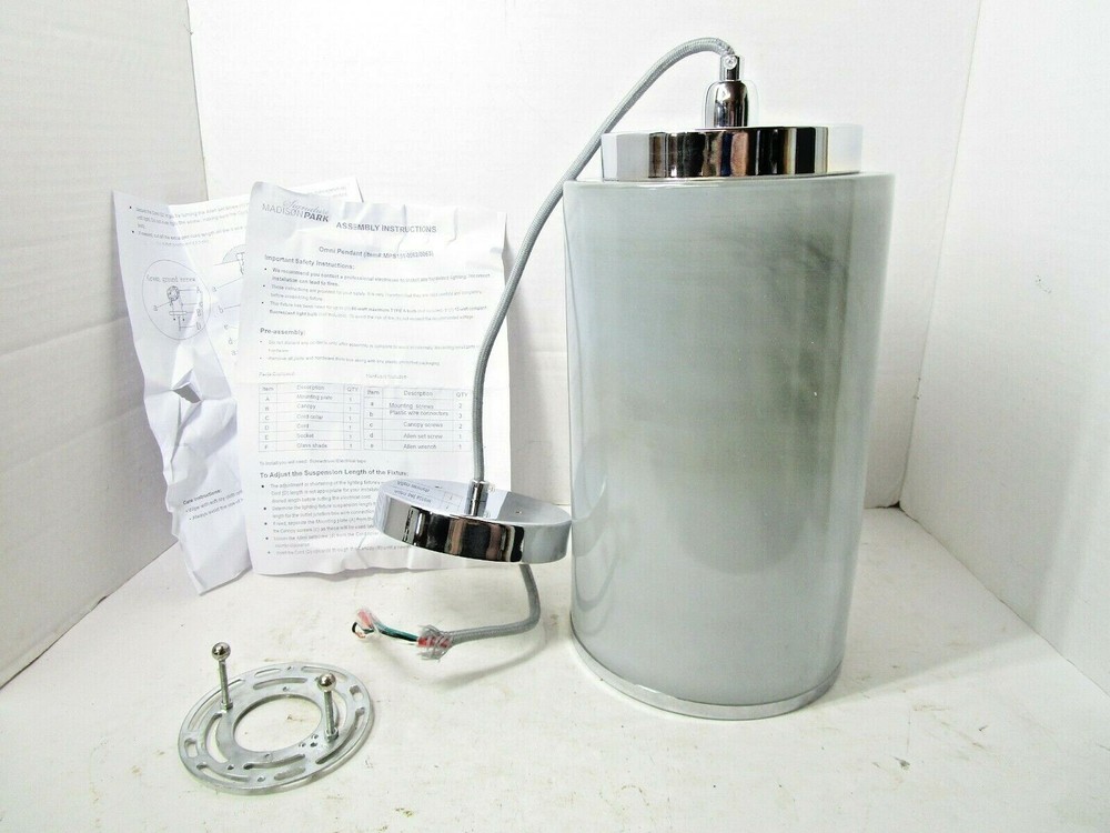 NEW Madison Park Pendant Omni Glass Pendant Light Fixture Hanging Home Ceiling MPS151-0063 Living Room Remodel New and complete in the opened box. Measures 28 1/2" from the ceiling, 14" tall glass x 7 1/2" wide glass. The cap is 5" wide. See our detailed photos. Free Shipping!
