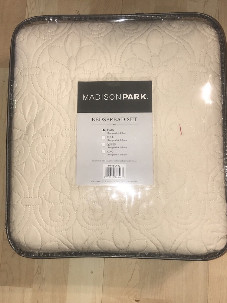 NEW MADISON PARK Bedspread Set TWIN Includes 1 bedspread and 1 pillow sham IVORY I ship within 24 hours of receiving your payment so you get your package fast! FREE SHIPPING!...