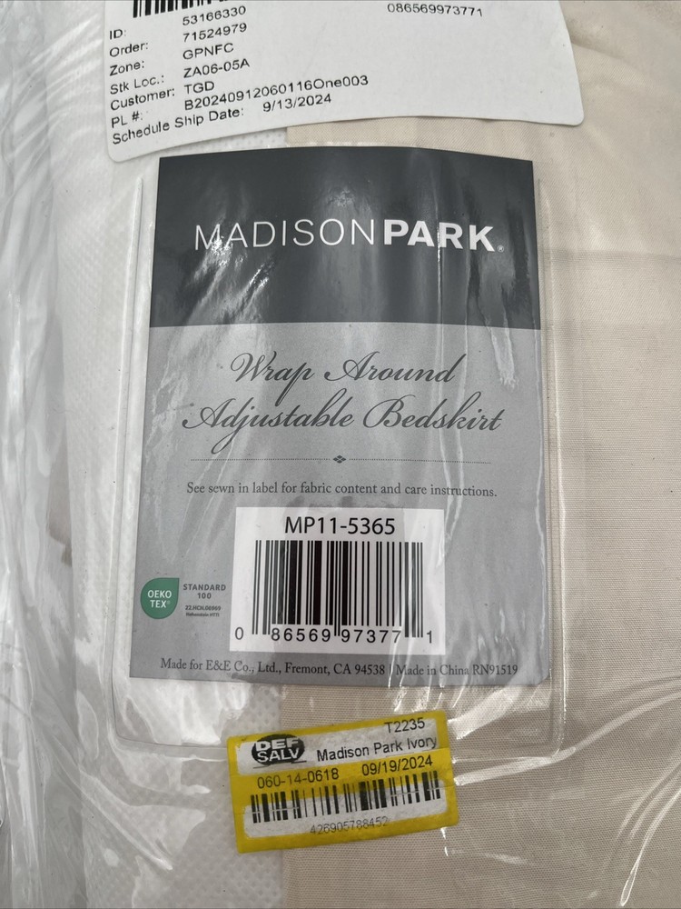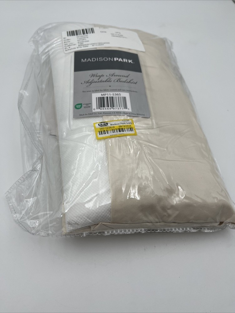The NEW Madison Park Simple Fit Wrap Around Adjustable Bedskirt in Ivory is a versatile and stylish addition to any bedroom. With its solid color design and one-size-fits-all wrap-around style, it offers a clean and modern look that complements any decor. Made by trusted brand Madison PARK, this bedskirt is perfect for adding a touch of elegance to your room while also providing a simple and easy way to update your bed's appearance. Ideal for a master bedroom or a guest room, this bedskirt is sure to enhance the overall look of your space.