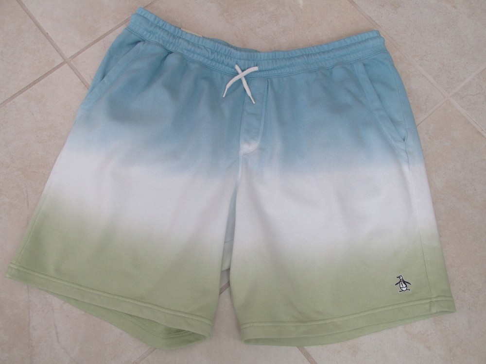 This auction is for a brand new pair of Original Penguin Ombre Fleece Shorts Sweatshorts in a MENS Size XXL The color is called cerulean (blue, green and white) Great for working out or hanging out Featuring an Ombre Dip Dyed print, these vibrant bottoms are crafted with fleece fabrication which adds softness and warmth for lounge-level comfort Pete is on the left leg to add a fashionable finishing touch Stretch 85% Cotton / 15% Polyester 9" Inseam Slim Fit Fleece Fabric A Drawstring Waist For A Secure Custom Fit Machine Wash Brand new with Original tags Retail was $79.00 when available Buyer to pay $6.50 shipping Track Page Views With Auctiva's Counter