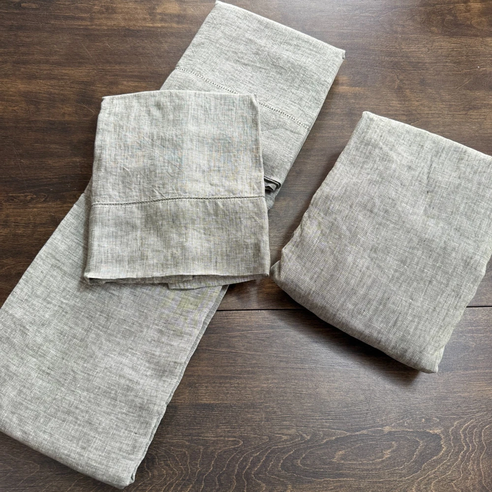 Pottery Barn Belgian Flax Linen Hemstitch Queen Sheet Set in Dark Green