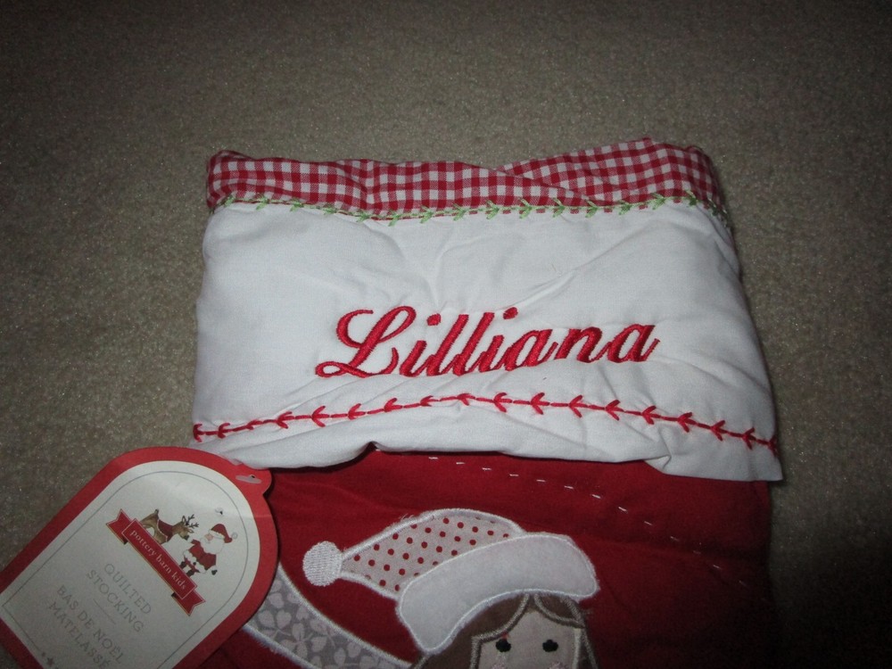 This buy it now is for a "LILLIANA" monogram with Christmas little girl Stocking made by Pottery Barn measures 20 x 11, never used problems, comes from smoke free home...