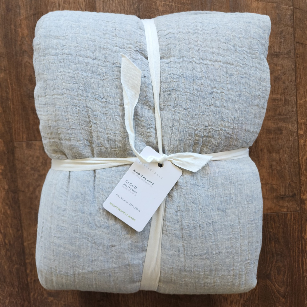 Material: Front is 75% cotton and 25% linen; reverses to 100% cotton. Reversible Design: Reverses to solid. Secure Design: Duvet features a hidden button closure with inner ties to keep insert in place. Components: Duvet cover and inserts are sold separately. Ethical Production: Made in a Fair Trade Certified™ factory, empowering workers who made it. Certification and Standards: OEKO-TEX® STANDARD 100 certified, tested for 1000+ harmful substances (14.HUS.42449 HOHENSTEIN HTTI). By choosing our cotton products, you’re supporting our investment in Better Cotton’s mission. This product is sourced via mass balance and therefore may not contain Better Cotton. Place of Manufacture: Imported. Care Instructions Machine wash in cold water; gentle cycle. Tumble dry on low heat; remove promptly. Dimensions King/Cal. King Duvet: 92" l x 108" w