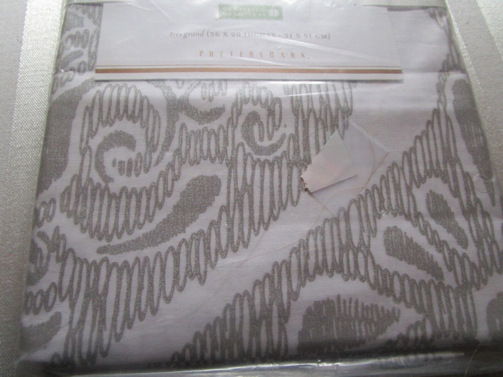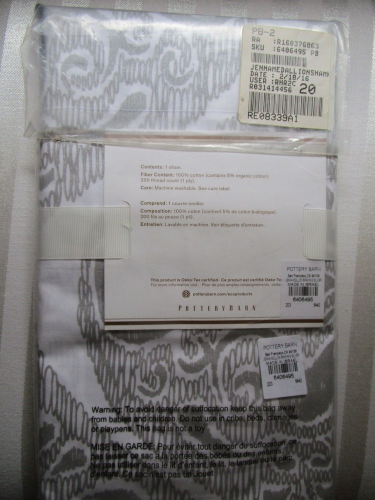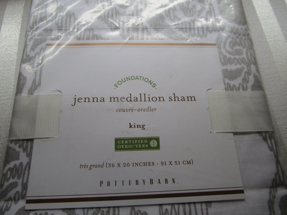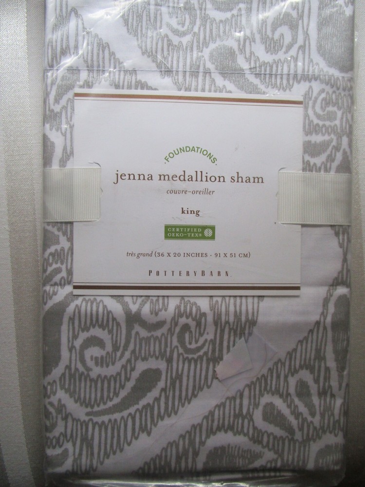 Elevate your bedroom with the contemporary elegance of the Pottery Barn Jenna Gray & White Medallion Sham. Designed for a king-size bed, this sham measures 36 x 20, providing ample coverage and a chic, modern touch to your bedding ensemble. The striking medallion pattern in neutral gray and white tones complements a variety of decor styles, effortlessly adding a touch of sophistication to your personal space. Crafted from 100% cotton, the sham ensures comfort and breathability. Its expertly tailored edges and high-quality construction reflect Pottery Barn's commitment to durability and style. Whether you're refreshing your bedroom or adding a refined layer to your guest suite, this sham is a tasteful choice that blends seamlessly with your existing decor.