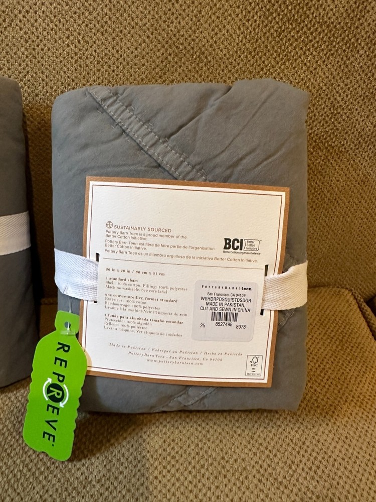 NEW Pair of 2 Pottery Barn Teen Washed Rapids Standard Shams 26" x 20" Dark Grey - This listing is for the pair of shams only -