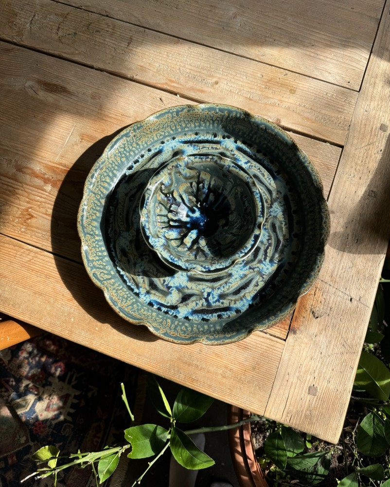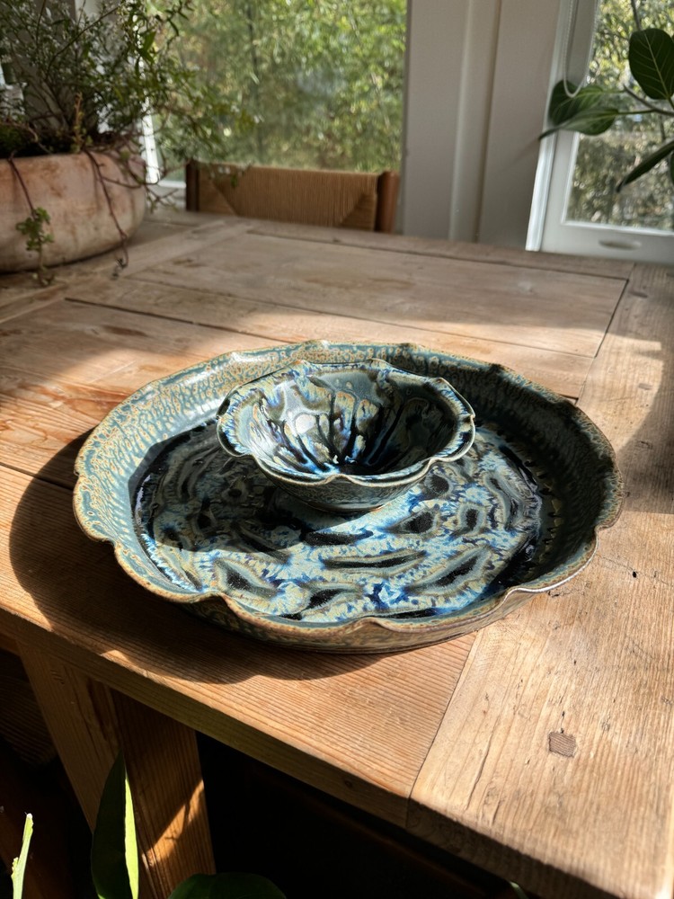 This handmade pottery is absolutely stunning—the blue drip glaze gives it such a unique, artistic touch. Perfect for serving chips and dip or displaying as a beautiful centerpiece. The craftsmanship is top-notch, and you can tell it’s made with care. Love that it’s a single piece—so elegant and functional. A must-have for any pottery lover!