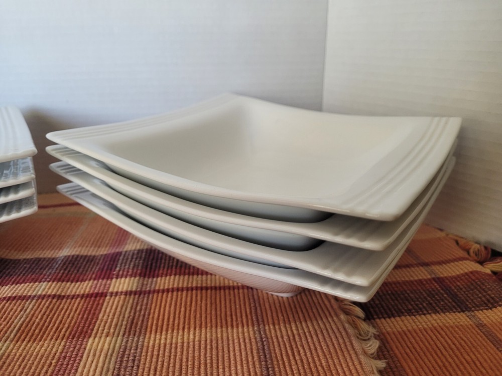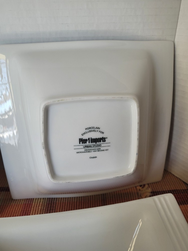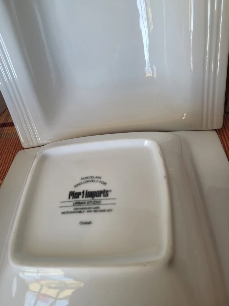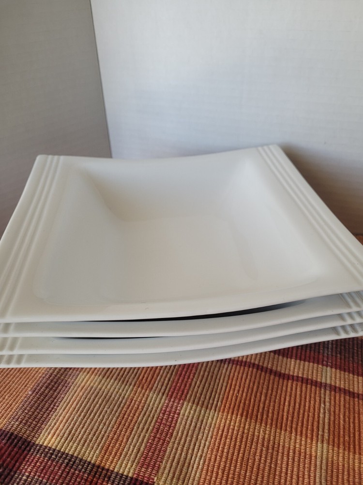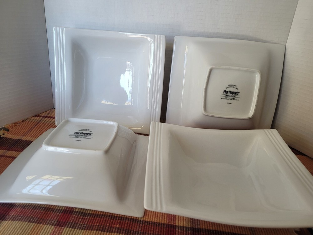 NEW! Pier 1 "URBAN STUDIO" - 8" Square - Set of 4 - CLASSIC DESIGN Pasta / Salad / Soup Bowls The new Pier 1 "URBAN STUDIO" 8" Square Pasta/Salad Bowls set includes four porcelain bowls with a classic white color and a glossy finish. These bowls are ideal for all occasions and have a square shape measuring 8" in length and width. The Urban Studio pattern by Pier 1 adds a touch of sophistication to any table setting, making them perfect for serving salads, pasta, or soup. Made of original porcelain, these bowls are a timeless addition to any adult's dinnerware collection. Any questions, please just ask. Take a minute and check out all of the NEW items in my store "FUN AND FUNKY FINDS". Thanks! B6P40