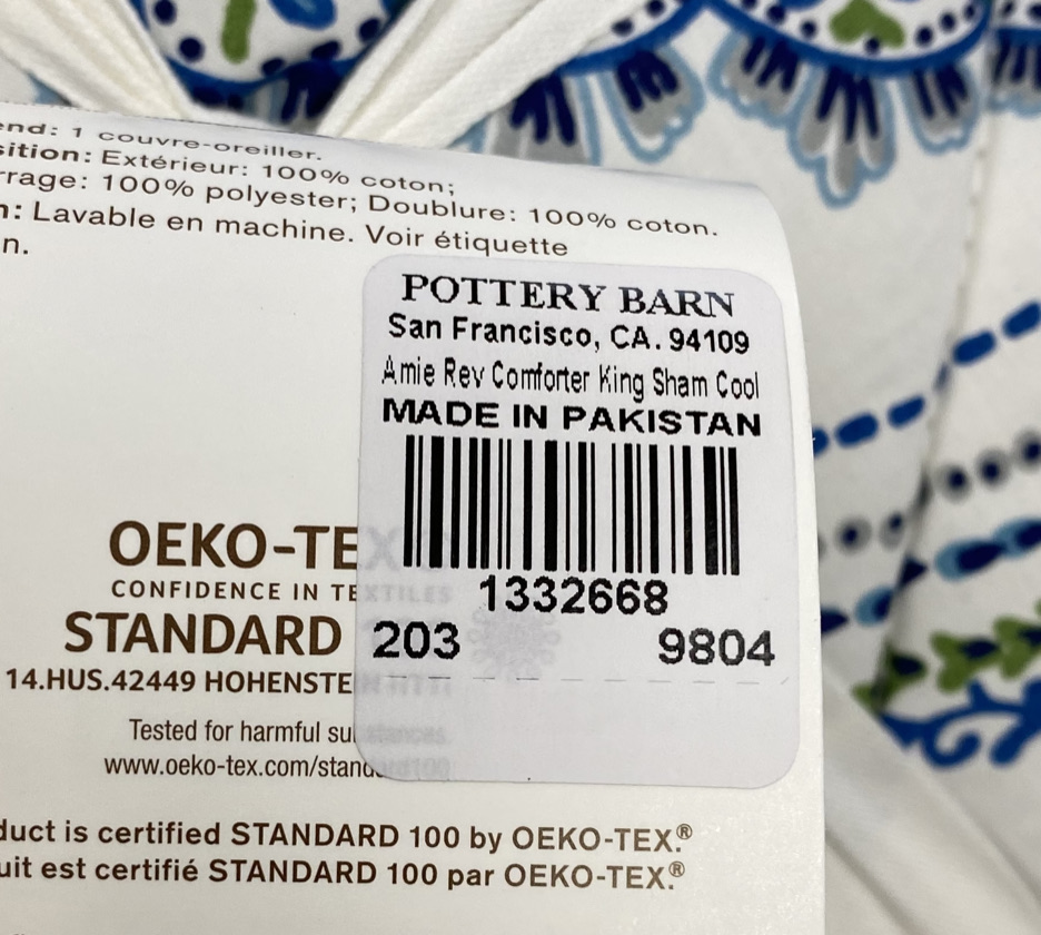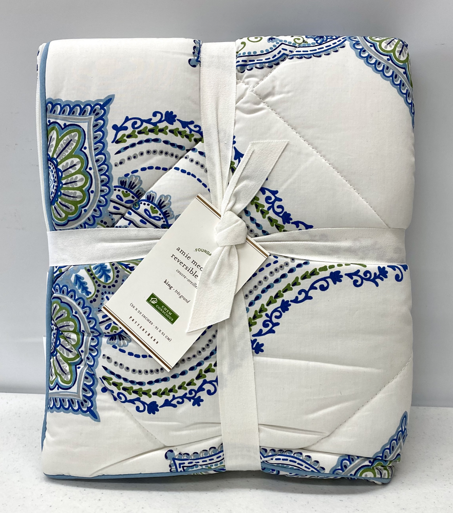 Pottery Barn Amie Meallion Reversible Sham King New Listing is For 1 Sham Woven of 100% cotton percale. Sham features an envelope closure. Reverses to same. Oeko-Tex® certified, the definitive mark of excellence for products that are healthy for you and healthy for the environment. 200-thread count. Machine washable. Imported. Any advertised shipping is for shipping within the contiguous 48 states and only applies to physical addresses (not PO Boxes). Please contact us for shipping costs to Alaska, Hawaii, US Protectorates, APO/FPO addresses and PO Boxes. All items are stored in a smoke/pet free environment. e*fairtrade is a third party seller and is in no way affiliated with Pottery Barn, Pottery Barn Kids, PB Teen, or any of it's affiliates, and as such, cannot offer or guarantee warranties, implied or otherwise, on any of our items.
