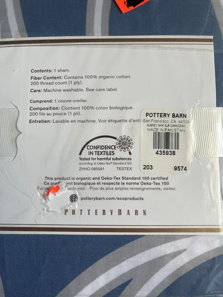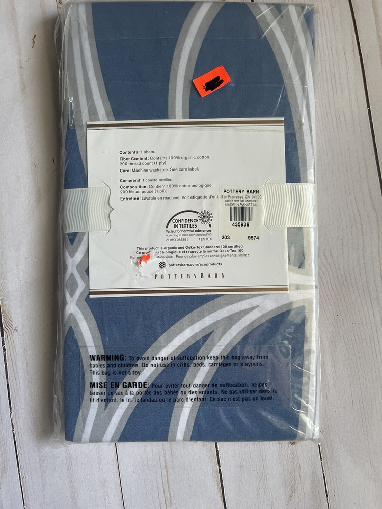 Pottery Barn NEW in package pillow sham Aubrey euro Smoke and pet free home....