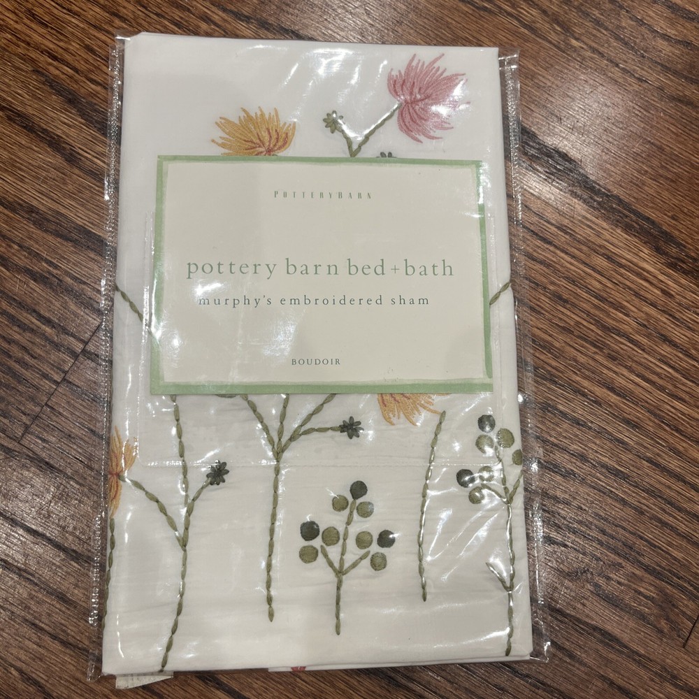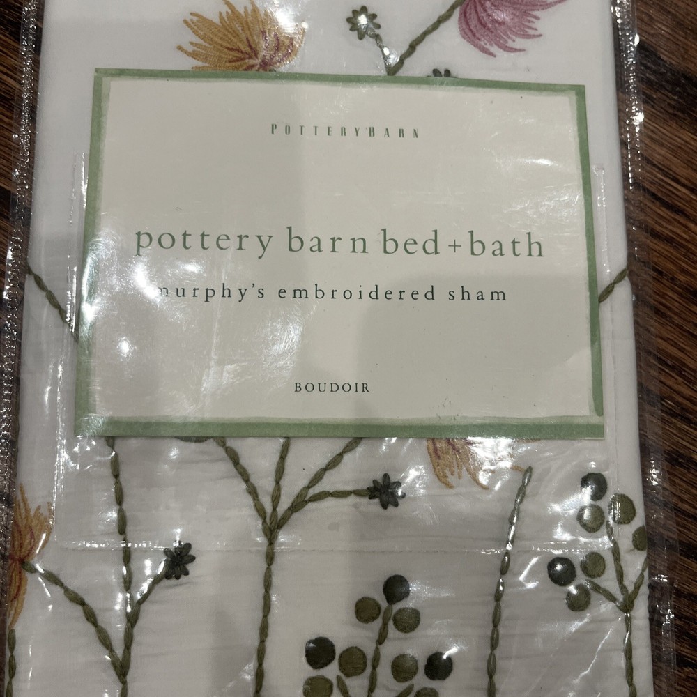 Add a touch of the tropics to your bedroom with this beautiful Pottery Barn sham. Featuring a vibrant floral pattern in shades of blue, pink, and green, this sham is sure to brighten up any space. Made from 100% cotton and with an embroidered design, it's both soft and stylish. The Euro size sham is perfect for any bed and is part of the Murphy's collection from Pottery Barn. It's a great addition to any bedroom decor and will add a touch of personality to your space. So why wait? Bring some island vibes to your bedroom with this stunning sham!