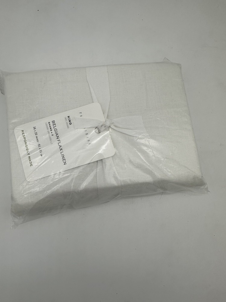 Add a touch of elegance to your bedroom with these Pottery Barn Belgian Flax Linen Contrast Flange KING Shams. The white and natural flax color combination gives a classic and sophisticated look to your decor. These pillow shams are made of high-quality linen material, ensuring a soft and comfortable feel. The shams are designed to fit a king-sized pillow, and the contrast flange adds a unique and stylish touch. Perfect for a bedroom or living room, these shams will help you achieve the perfect look. Order now and add a touch of luxury to your home!