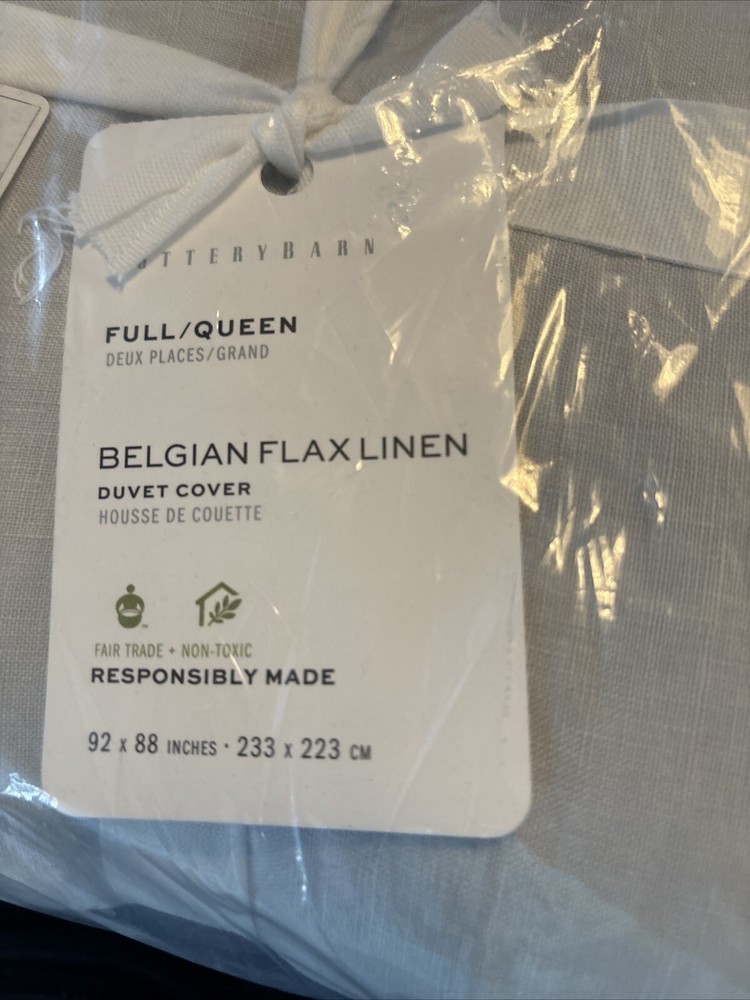 This is a NEW Pottery Barn Belgian Flax Linen Duvet Cover in Full/Queen size and Soft Gray color. It is made of a Linen Cotton Blend material, perfect for the bedroom. The set includes the duvet cover from the Pottery Barn Belgian Flax collection.