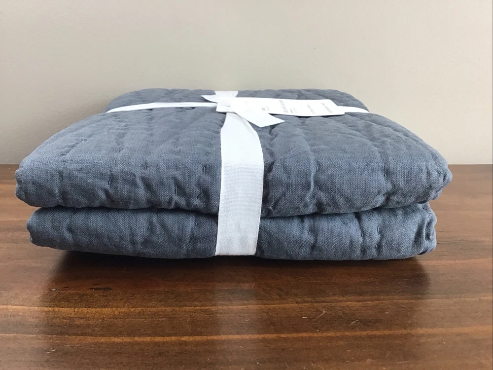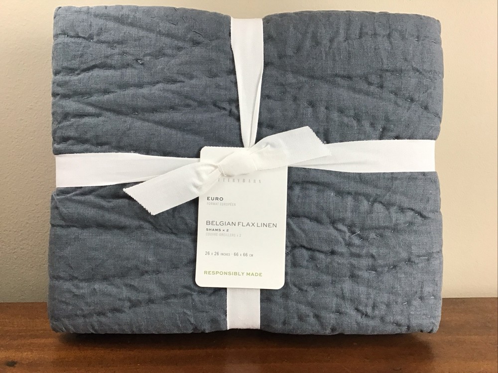 NEW Pottery Barn Belgian Flax Linen Handcrafted Quilted EURO Shams Includes 2 EURO Square Shams (26" x 26") Color is Steel Blue Pottery Barn ID# 31033143 Please see pictures for full description of condition Thanks for looking & please reach out with any questions!