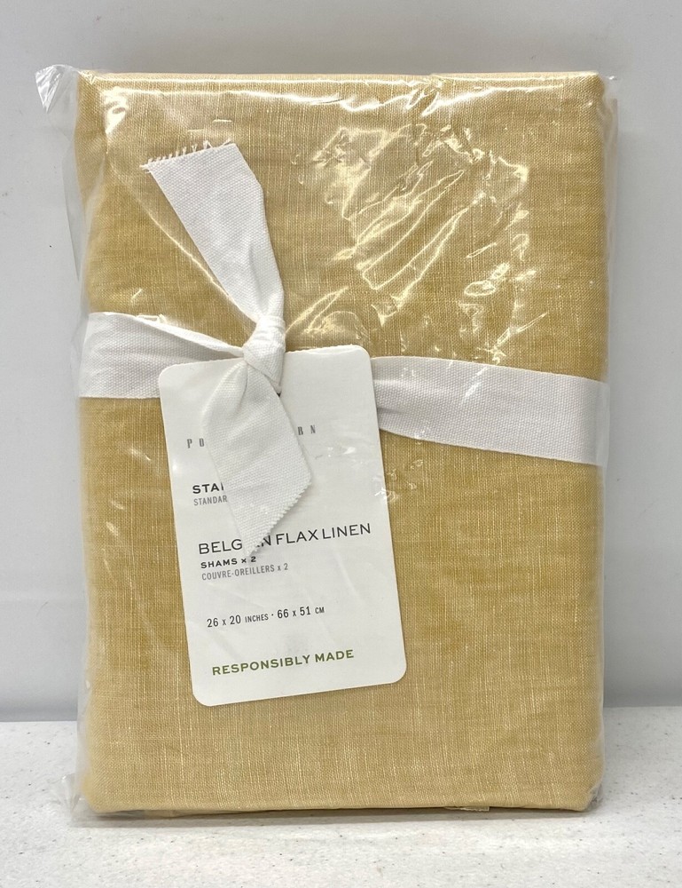 Pottery Barn Belgian Flax Linen KNIFE EDGE Shams Standard Daffodil New SET OF 2 Pottery Barn Describes This Item As Follows: Woven from the world’s finest Belgian flax, our linen bedding is prewashed for incredible softness – and only gets better with time. Lightly textured and cool to the touch, this natural fiber fabric is prized for its durability, breathability, and lived-in look. These shams have a clean, knife-edge trim for modern appeal. Made of 100% Belgian Flax Linen. Reverses to same. Sham features an envelope closure. OEKO-TEX® STANDARD 100: tested for 1000+ harmful substances. 14.HUS.42449 HOHENSTEIN HTTI. Made in a Fair Trade Certified™ factory, empowering workers who made it. Imported. Standard Sham: 20" h x 26" w Any advertised shipping is for shipping within the contiguous 48 states and only applies to physical addresses (not PO Boxes). Please contact us for shipping costs to Alaska, Hawaii, US Protectorates, APO/FPO addresses and PO Boxes. All items are stored in a smoke/pet free environment. e*fairtrade is a third party seller and is in no way affiliated with Pottery Barn, Pottery Barn Kids, PB Teen, or any of its affiliates, and as such, cannot offer or guarantee warranties, implied or otherwise, on any of our items.