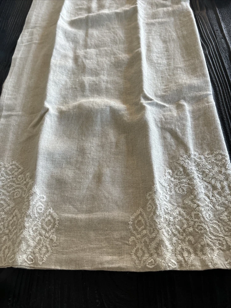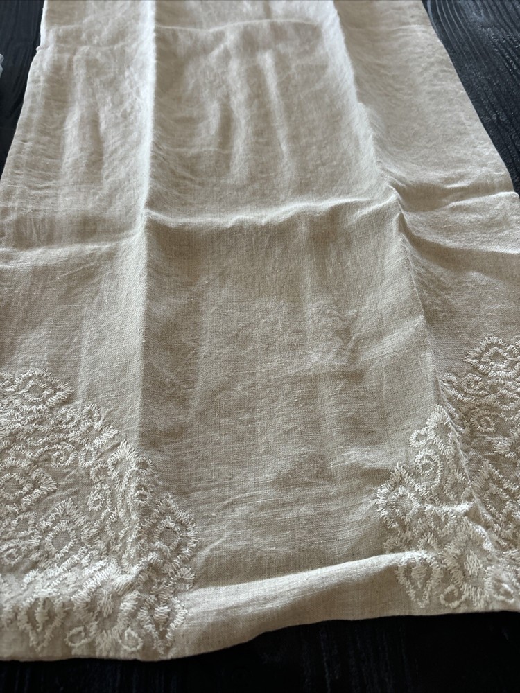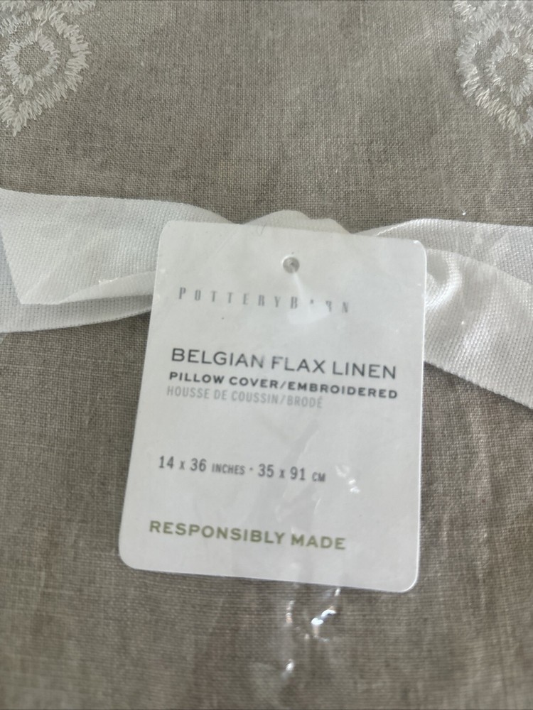 Add a touch of elegance to your home décor with this beautiful Pottery Barn Belgian Linen Embroidered Lumbar Pillow Cover. The 100% linen material is soft and durable, and the embroidered design adds a unique and stylish touch to any room. Measuring 14" w x 36", this lumbar pillow cover is perfect for adding to your collection of decorative pillows. The zip closure makes it easy to remove and wash, and the one-piece character family adds a touch of sophistication to your decor.