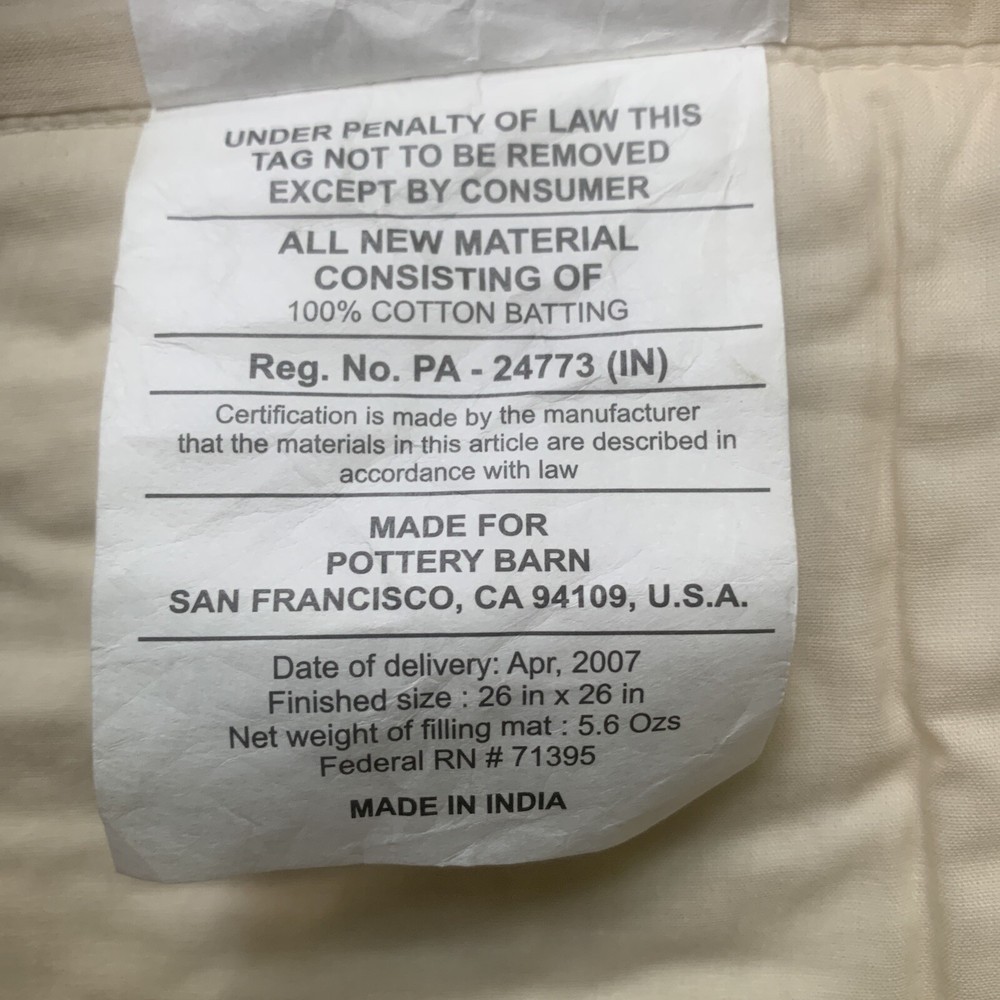 Add a touch of elegance to your bedroom with this beautiful Pottery Barn Euro Sham Pillow Shams. Made of 100% cotton, this square pillow sham is designed with a diamond pattern and quilted features, giving it a unique and stylish look. The beige color complements any decor, while the 26-inch size is perfect for both snuggling up to and displaying on your bed. This pillow sham is easy to install and requires no closure, making it a hassle-free addition to your bedding collection. Whether you're looking to add a touch of sophistication to your master bedroom or simply want to elevate your bedding game, this Pottery Barn Euro Sham Pillow Shams is the perfect choice. Package has been opened but sham is new.