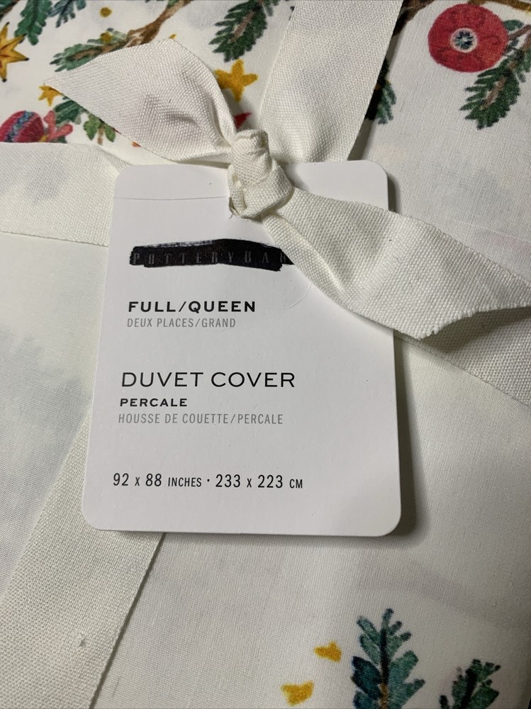 Add a touch of country Christmas to your bedroom with this beautiful Pottery Barn duvet cover. The multicolor Christmas in the Country pattern features a Queen size duvet cover made of 100% cotton percale material with button closure. This set includes one duvet cover, perfect for the holiday season. The Christmas and Holiday-themed design adds a festive touch to any bedroom, making it perfect for the season. The duvet cover is machine washable with care instructions provided. This Pottery Barn duvet cover is perfect for anyone looking for a country-style touch to their bedroom during the holiday season. Add this duvet cover to your bedroom and enjoy the coziness and warmth it brings.