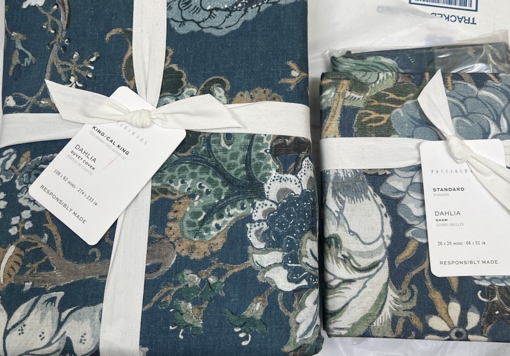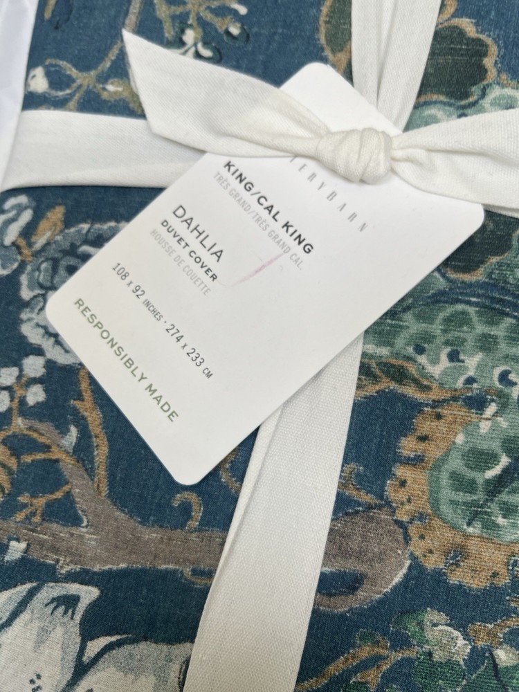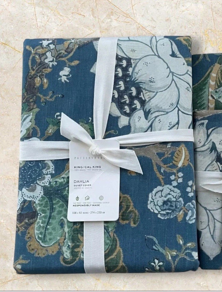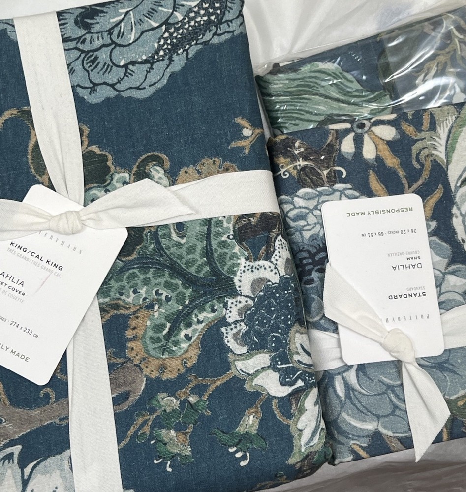 NEW Pottery Barn DAHLIA FLORAL King Duvet & Two stando Shams Blue Reversible Add a touch of elegance to your bedroom with this stunning Pottery Barn DAHLIA FLORAL King Duvet Cover Set. The set includes a king-sized duvet cover and two standard shams, all featuring a beautiful multicolor dahlia flower design that will add a pop of color to your bedding. The reversible feature of the set allows you to switch up the look of your bedding with ease. This high-quality set is perfect for anyone looking to upgrade their bedding collection. The Pottery Barn brand is known for its quality and attention to detail, and this duvet cover set is no exception. Whether you're refreshing your bedroom or adding a touch of luxury to your guest room, this DAHLIA FLORAL King Duvet Cover Set is the perfect choice.