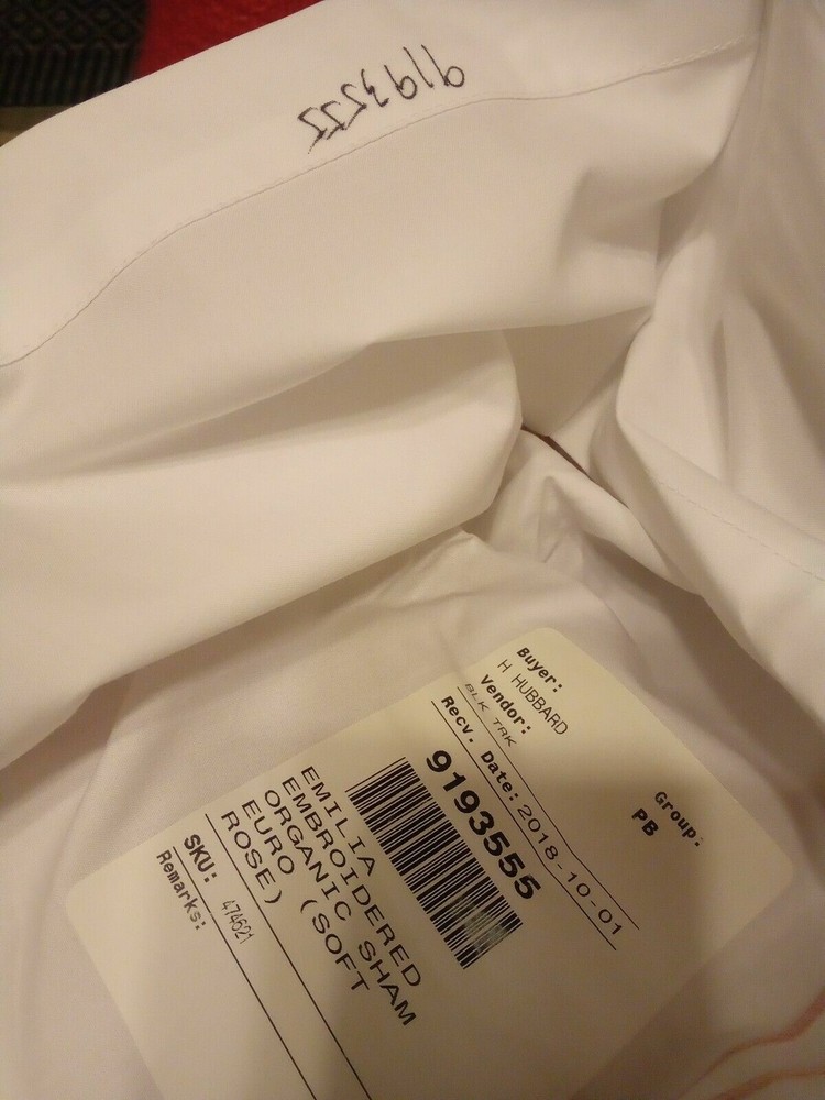 selling a brand new pottery barn Emilia embroidered Organic Euro sham in soft rose. This is brand new and was used in PB photoshoot, so they removed tags and wrote sku # on inside, doesn't effect sham... like brand new. ONLY selling 1 sham in this size. Retails for $59.50+ new... PRICE IS FOR 1 SHAM! comes from a pet and smoke free home I have LOTS of PB treasures, so please check out other listings or inquire.