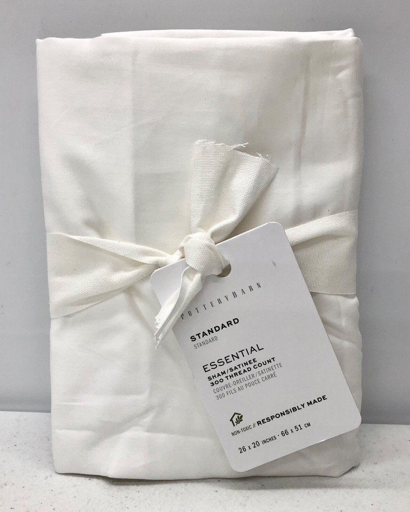 Pottery Barn Essential Sateen Sham Standard White New Listing is for 1 Sham Pottery Barn Describes This Items As Follows: Made of 100% cotton with a sateen weave. Sham features an envelope closure. 300-thread count. STANDARD 100 by OEKO-TEX® Certified: WSI Certificate #: 14.HUS.42449 HOHENSTEIN HTTI: tested for 400+ harmful substances to keep you and your family safe from chemicals common to textile manufacturing. Insert Not included Imported. Standard Sham: 20" h x 26" w Any advertised shipping is for shipping within the contiguous 48 states and only applies to physical addresses (not PO Boxes). Please contact us for shipping costs to Alaska, Hawaii, US Protectorates, APO/FPO addresses and PO Boxes. All items are stored in a smoke/pet free environment. e*fairtrade is a third party seller and is in no way affiliated with Pottery Barn, Pottery Barn Kids, PB Teen, or any of its affiliates, and as such, cannot offer or guarantee warranties, implied or otherwise, on any of our items.