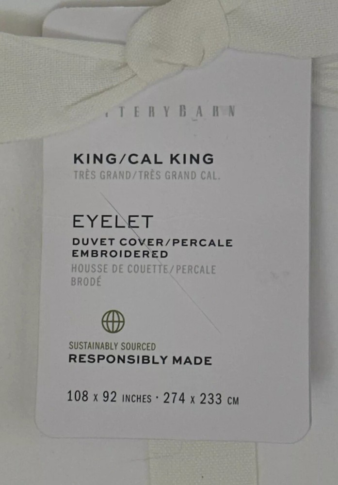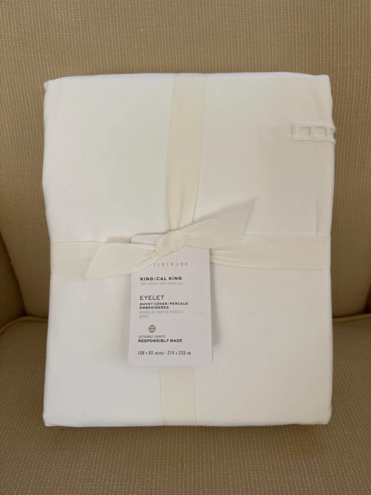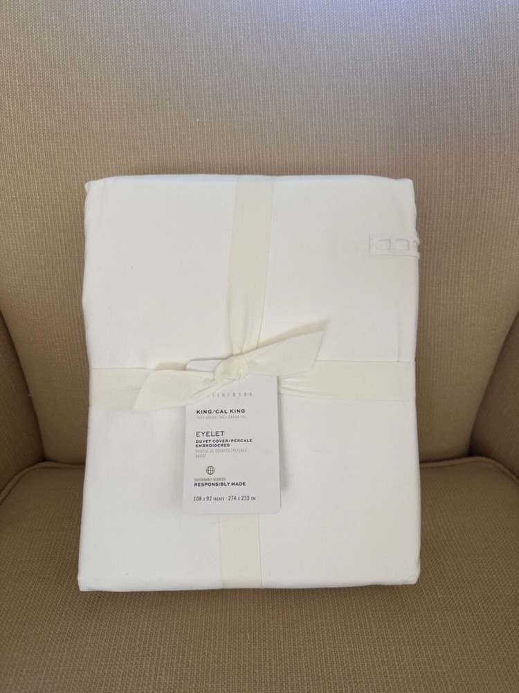 NEW Pottery Barn Eyelet Percale KING Duvet Cover White $279...