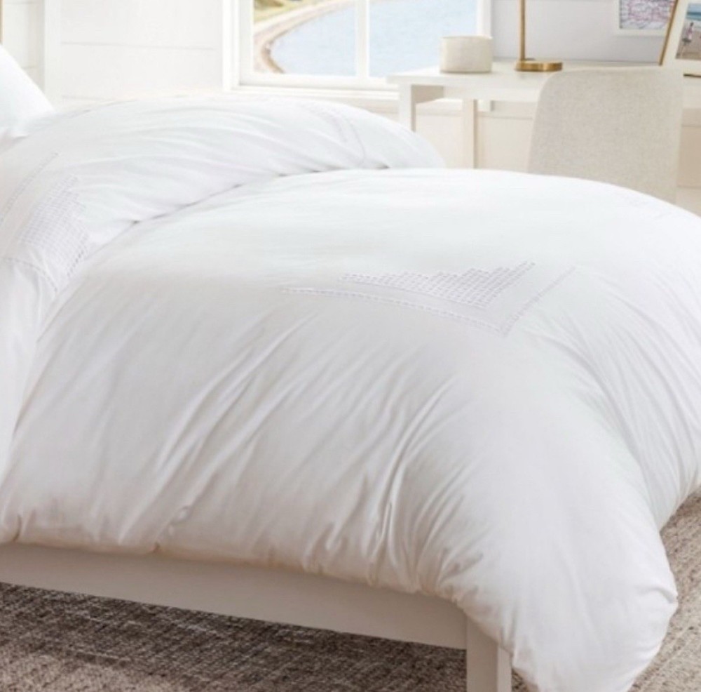 NEW Pottery Barn Eyelet Percale KING Duvet Cover White $279