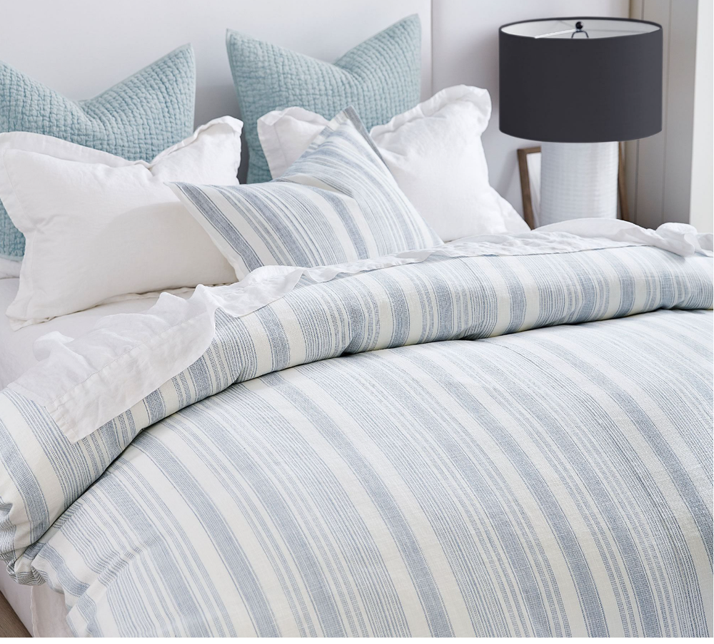 NEW Pottery Barn Hawthorn Stripe Cotton Standard Sham 4965266 Blue - see last photos that show coordinating bedding (not included) only sham