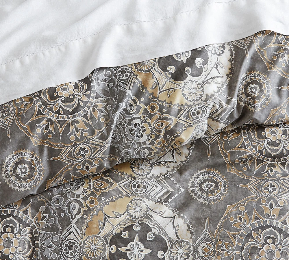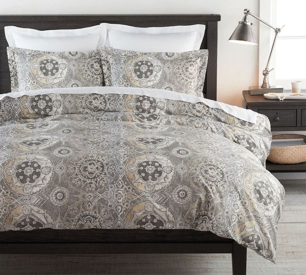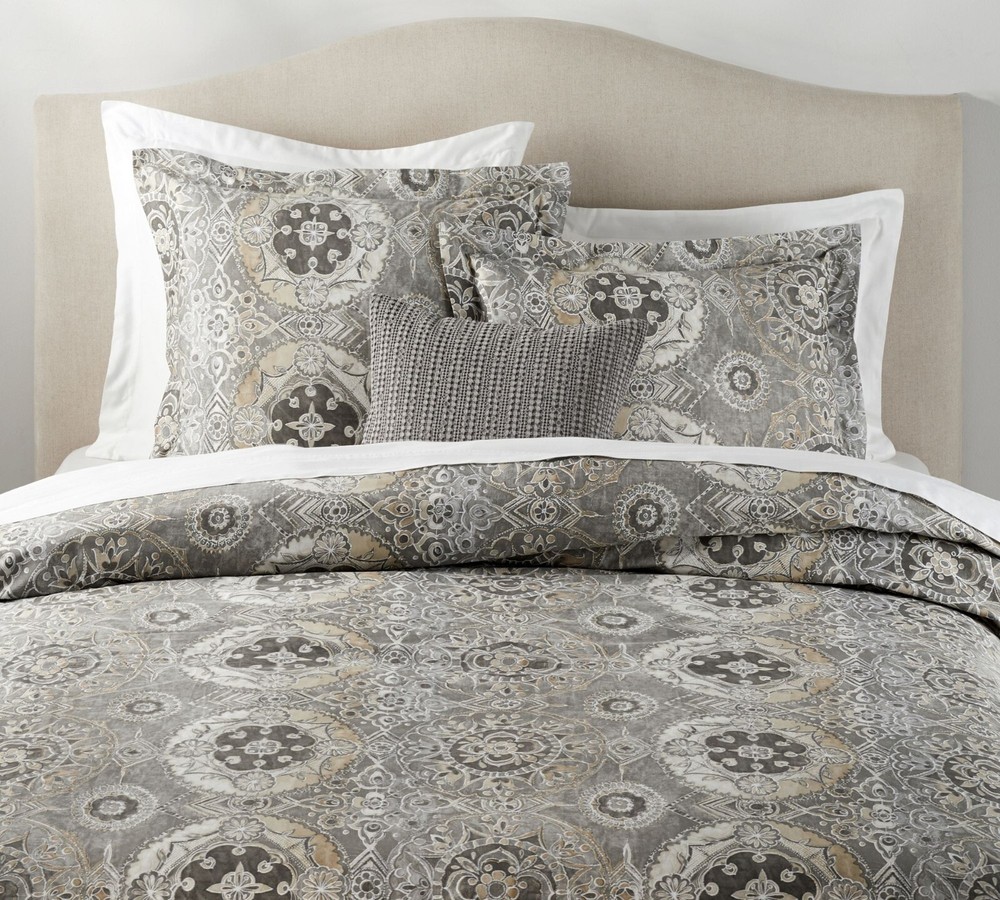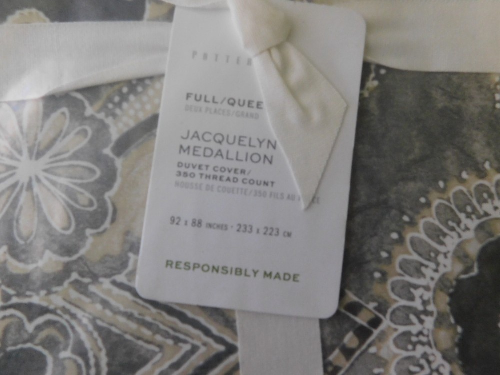 Brand New with Tags Duvet Cover is Full/Queen 2 Shams are Standard A pattern of striking medallions printed in rich colors on our smooth sateen brings a sumptuous feel to your bed. Add a mix of textured accent pillows to complete the look. · Front and reverse fabric is 100% cotton. · Reverses to same pattern. · Duvet cover has interior ties and a hidden button closure; sham has an envelope closure. · 350-Thread count. · Duvet cover and insert sold separately. · Shams sold in a set of 2. · Machine wash. · Imported. DIMENSIONS · Duvet Cover: Full/Queen: 88" l x 92" w · Sham: Standard: 20" h x 26" w. Flange: 2" CARE AND MAINTENANCE · Machine wash in cold water; gentle cycle. · Only non-chlorine bleach when needed. · Tumble dry on low heat; remove promptly. · Warm iron as needed. See my other auctions this week for other Restoration Hardware and Pottery Barn pieces at fantastic prices. Thanks for looking and happy bidding!!