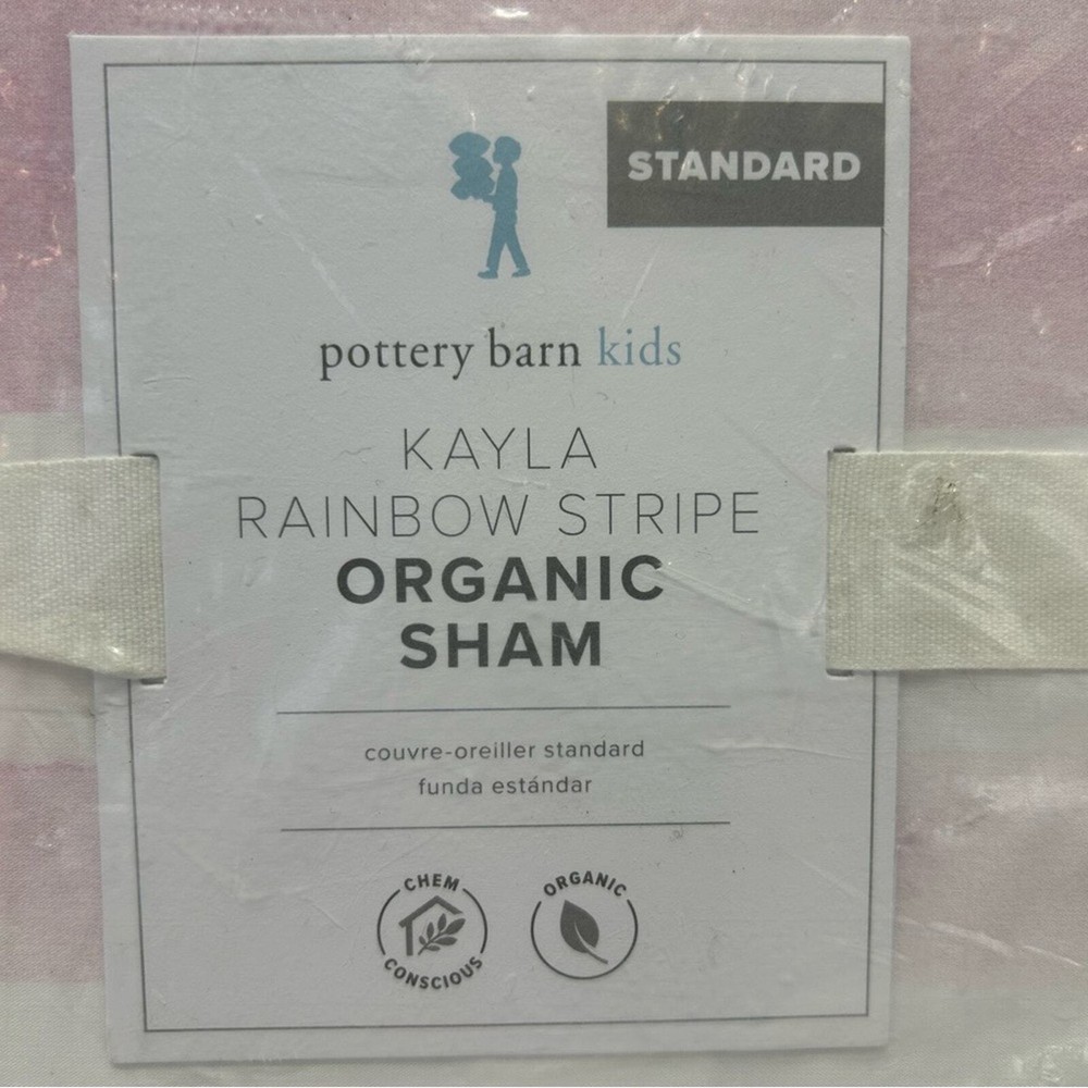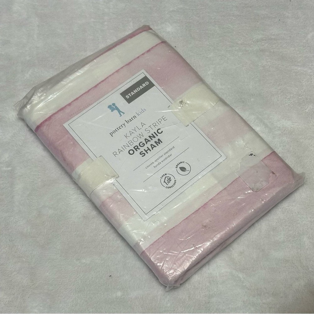 <![CDATA[<div>NEW Pottery Barn Kids Organic Sham Standard Pink White Kayla Pink Stripe Packaging says 'Rainbow' but colors are only Pink and White Brand new in packaging! *This is only for one sham. Insert not included. Comes from a clean and smoke free home!