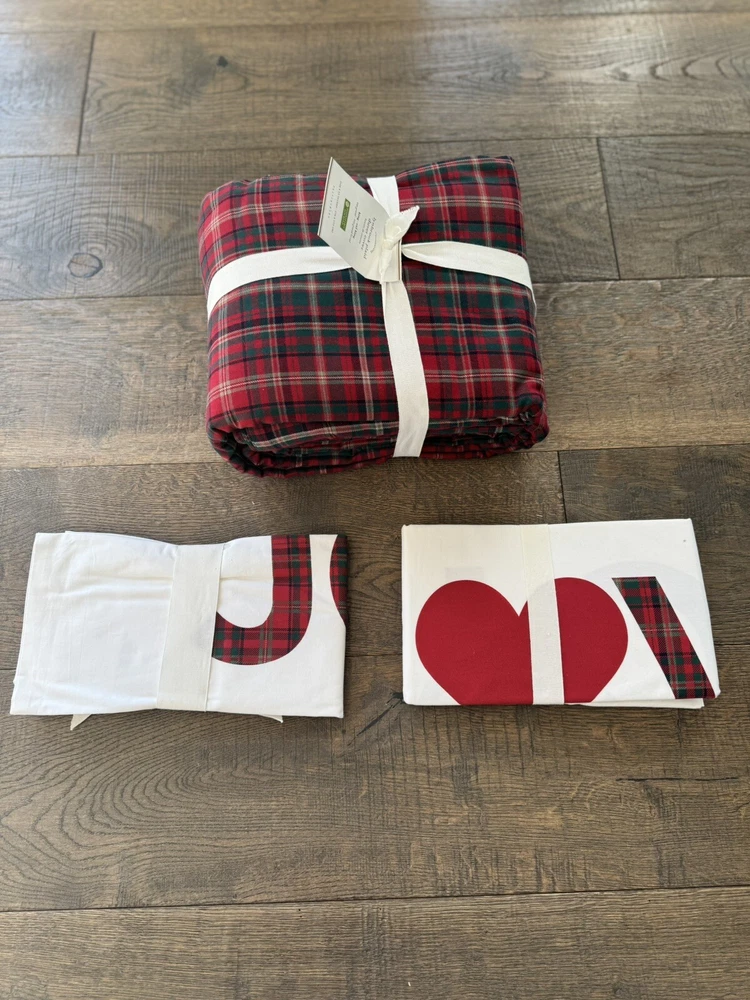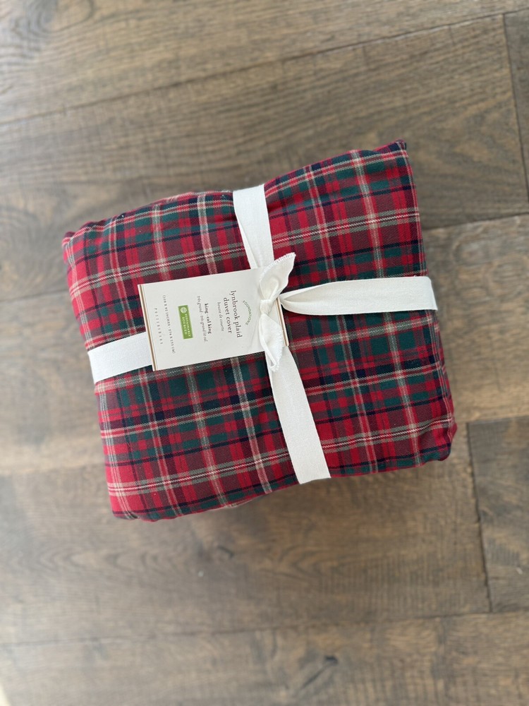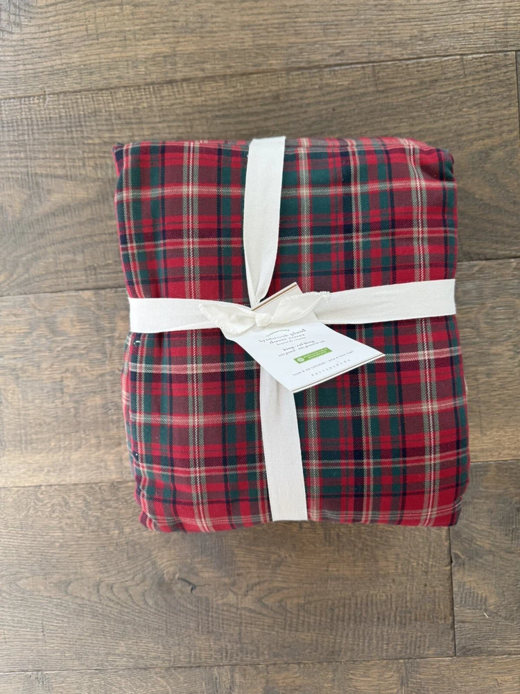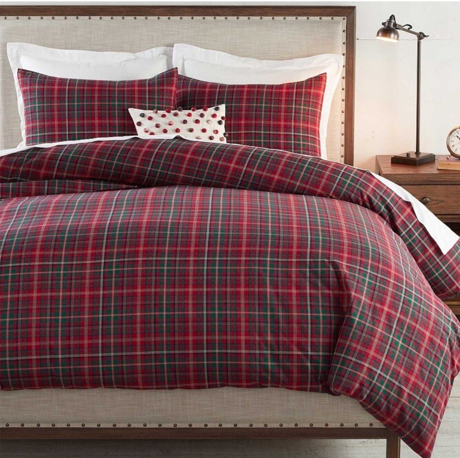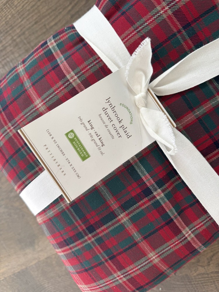 Add a touch of holiday cheer to your bedroom with this Pottery Barn LYNBROOK duvet cover set. The red plaid pattern is perfect for this season and will complement any decor. The set includes a king size duvet cover and standard pillowcases, making it a great addition to your bedding collection. Made of high-quality cotton, this set is sure to keep you comfortable and cozy all night long. Whether you're looking to update your bedding or just add some festive flair to your home, this Pottery Barn duvet cover set is a great choice.