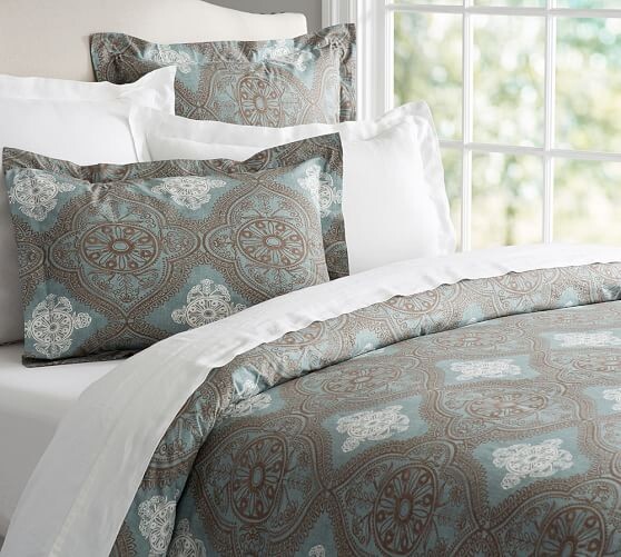 Brand New with Tags Duvet is King 2 Shams are Standard Color is Blue The fine, intricate lines of this ornamental pattern have a lacy look that creates a stunning decorative focus atop the bed. · Woven of 100% cotton. · Oeko-Tex certified. · 200-thread count. · Duvet cover has a hidden button closure; sham has an envelope closure. · Duvet cover, sham and insert sold separately. · Machine wash. · Imported. See my other auctions this week for other Restoration Hardware and Pottery Barn pieces at fantastic prices. Thanks for looking and happy bidding!!
