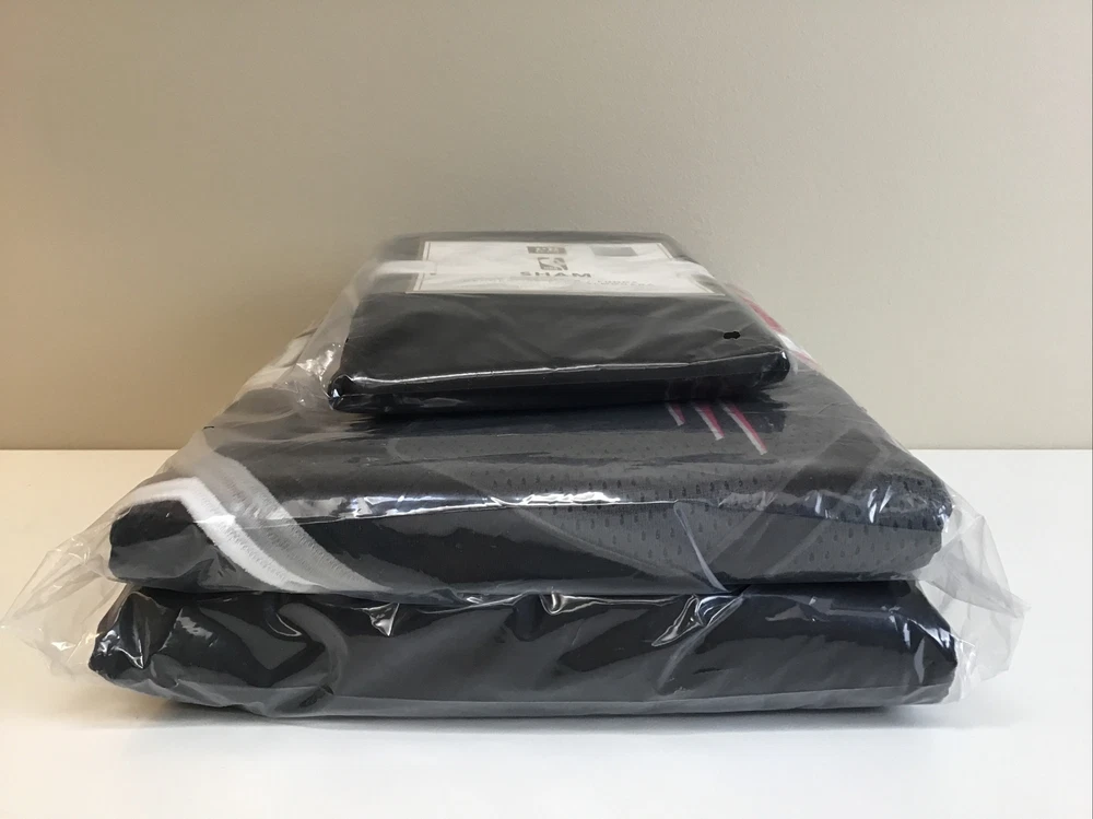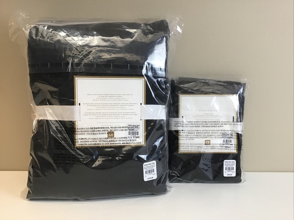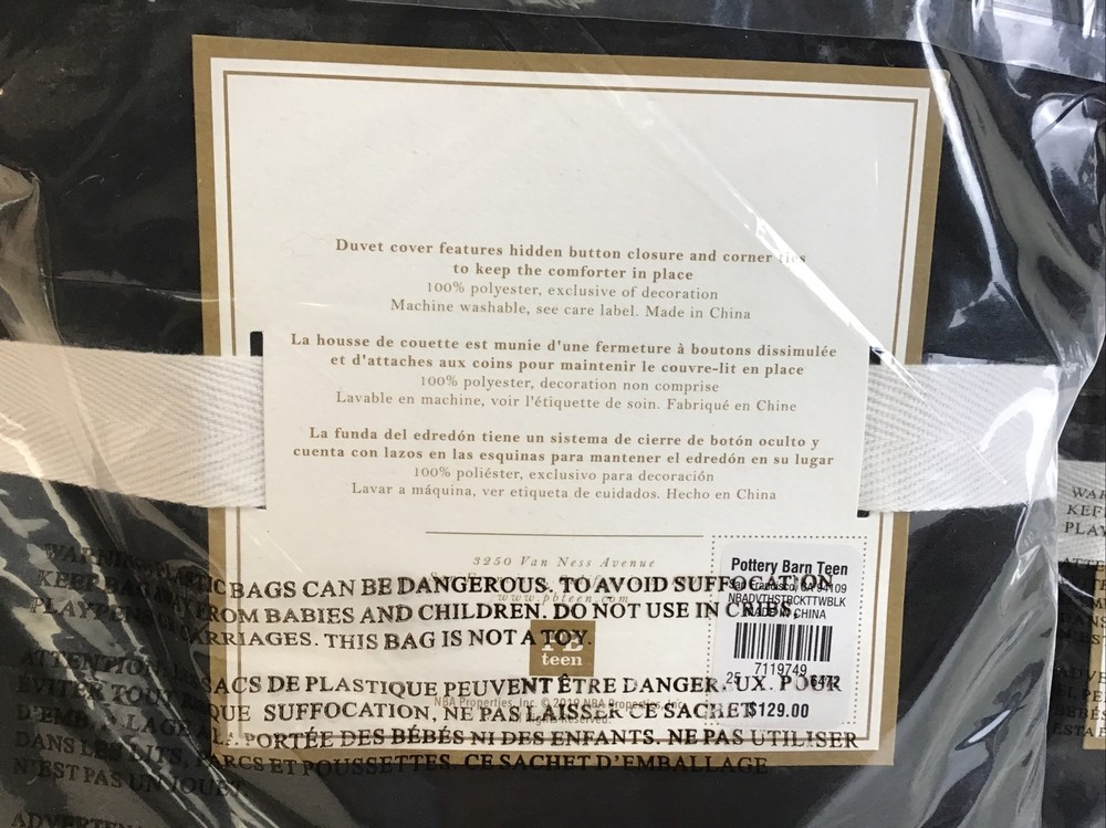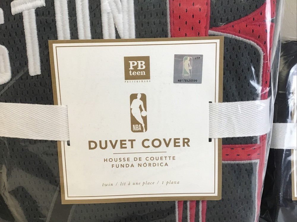 Two Piece Set: Pottery Barn PB Teen HOUSTON ROCKETS TWIN DUVET COVER + STANDARD SHAM Twin-sized duvet cover fits both standard twin and twin XL dorm mattresses. Duvet Cover : 68" wide x 86" long Standard Sham: 26" wide x 20" high Duvet cover and sham reverse to a solid color Duvet cover has interior ties and a hidden button closure to keep the duvet in place; sham has an overlap closure Woven from 100% polyester microfiber with a cotton and polyester appliques and satin stitch embroidery details Machine wash in cold water with like colors; gentle cycle Shipped with USPS Priority Mail