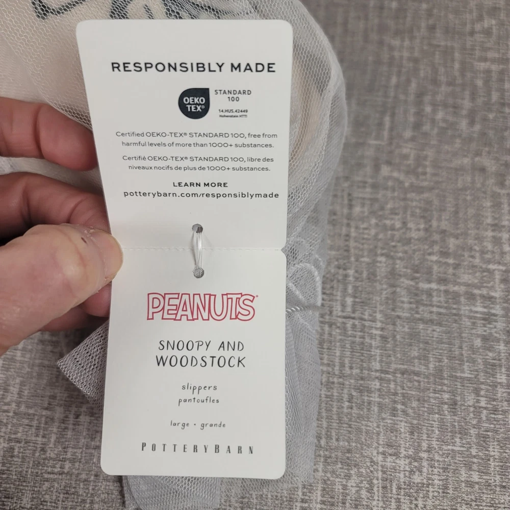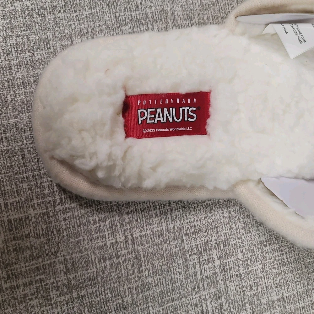 NEW with tags & net dustbag Pottery Barn PEANUTS Unisex Slippers Size Large Large size is equivalent to Women’s size 10-11 or Men’s size 8-9 Ivory White with Gray Cozy Slip Ons Buying more than 1 item from my store? Please reach out and I will adjust the shipping charges to reflect 1 package. Thanks for Shopping on Blackbird Lane *We will gladly accept returns of items within 30 days of receipt of your item. Item MUST be in the original condition in which is was shipped out, including all tags on items & all original packaging where applicable. *Buyer responsible for return shipping charges. *Original shipping charges are non-refundable. *Once we have received the item back, we will inspect the item to verify that it is exactly how it was shipped out to you and if it passes inspection, a refund will be issue for the item only. Original shipping charges will not be refunded and if item was shipped out with free shipping, original shipping charges will be deducted from refund. *Should the item be returned in condition other then what was sent, a refund will NOT be issued.