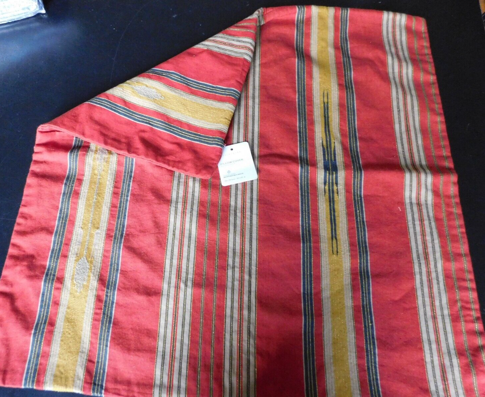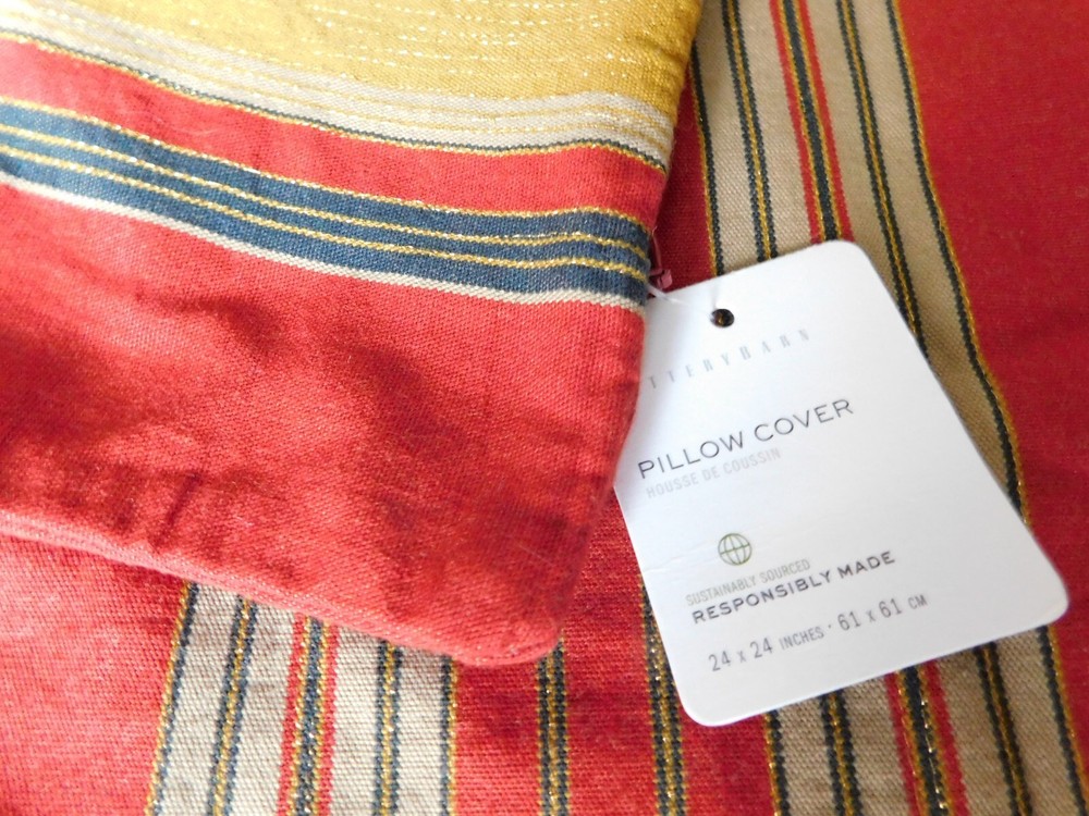 Brand New with Tags 24” x 24” Zipper Closure Insert not Included A room only gets cozier when you add this soft-as-a-sweater throw pillow. The suiting-inspired palette of charcoal, red, and mustard make it a handsome accent for warm wood finishes and classic leather upholstery. · Made of 100% Cotton. · Reverses to same. · Zipper closure. · Accommodates a 24" square insert. · Imported. · Machine wash in warm water; gentle cycle. · Use only non-chlorine bleach, if needed. · Tumble dry on low heat. · Warm iron, as needed. · Overall: 24" sq · Zipper: 22" See my other auctions this week for other Restoration Hardware and Pottery Barn pieces at fantastic prices. Thanks for looking and happy bidding!!