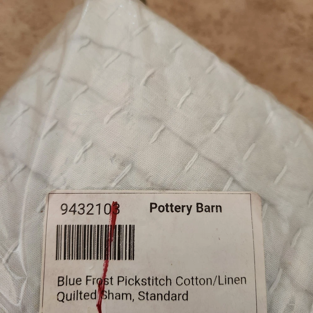 Selling a brand new SOLD OUT Pottery barn pick stitch Standard sham in blue frost. Brand new without tags and out of original packaging. I did notice there are a few pulls on thread on 1 side of sham. Probably can just trim them off, or tighten them... still in new condition. See pics...Only have 1 in this size PRICE IS FOR 1 SHAM! come from a pet and smoke free home I have LOTS of PB treasures, so please check out my other listings or inquire.