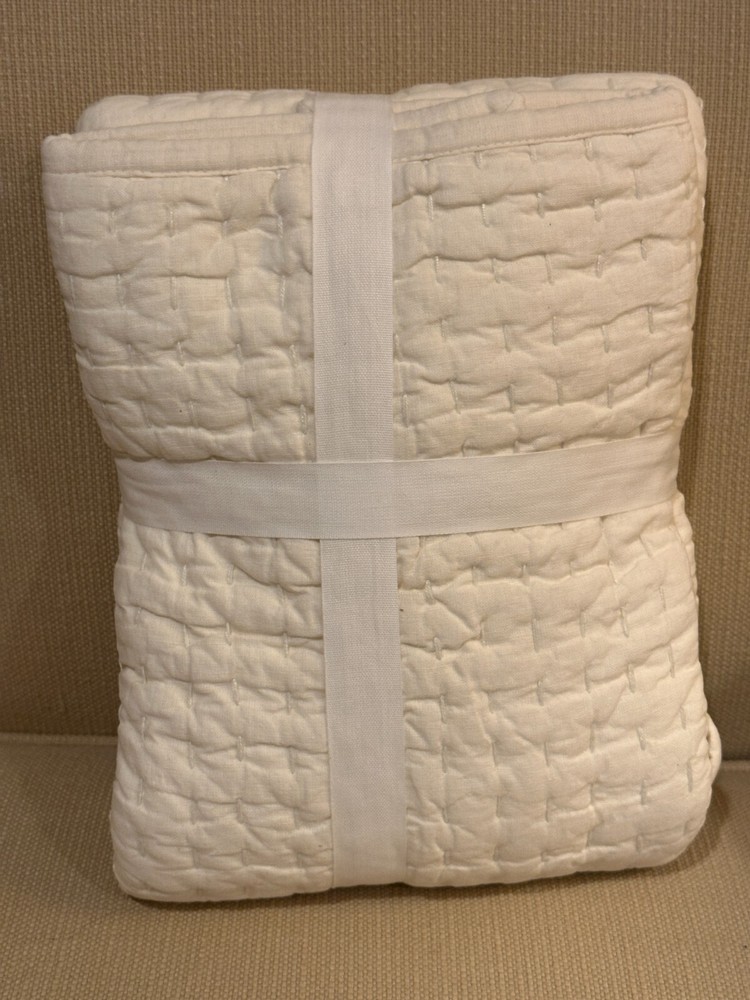NEW Pottery Barn Pickstitch Handcrafted Cotton Linen KING Sham Sonoma IVORY - photo shows matching bedding not included -sham only