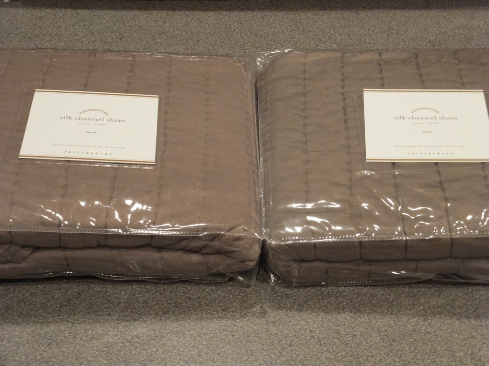 ~~~~~~~~~~~~~~~ Welcome to the Pottery Barn Treasure Trove: I have the widest selection of out of production, discontinued, and hard-to-find quilts and duvets from Pottery Barn, on the web. This is quite possibly your last chance at owning some of these classic/vintage Pottery Barn bedding patterns, in new condition, ever. Don't miss out. Once they are gone, they are gone forever. Get this while you can from a trusted eBay seller! ~~~~~~~~~~~~~~~ P O T T E R Y B A R N Silk Channel (Brownstone) Euro Sham 2 Available Just the sham is included (no pillow insert). Get it here, now, while it is still available. Listing Details: This listing is for a single euro sham in the 'silk channel' line of bedding from Pottery Barn. This line of bedding is no longer available from Pottery Barn. This is a luxurious, extremely soft to the touch, silk faced sham, in the Brownstone color. This is two-toned/reversible. The reverse is a lighter shade of the color of the front. These are great as accent pillows. I have two of them available. Buy one, or buy both. Price listed is for each. The listed, non-sale price represents a 14% discount off retail prices ($69.00). Save an additional 10% when purchasing both. Combined shipping discount applies when adding both to your cart for purchase. IMPORTANT: There is a slight color variation between the two shams, possibly indicating that they were from different dye lots. This is most visible when under bright lights (as was the case when I took the pictures for this listing). If you are looking for a perfect match, these are not for you. But if you are going for a tonal look, the color variations are beautiful when paired with tonal duvet, or shams are intentionally reversed to show both sides. The last photo shows the two shams side by side, so you can see the color difference. S ize: Euro (accommodates a 26" x 26" pillow) From Pottery Barn: Woven from a blend of silk and cotton, our Silk Channel bedding is breathable and smooth. Rows of channel stitching on both sides make it completely reversible. Hand quilted of a silk and cotton blend. 100% cotton batting. Sham features a button closure. Pottery Barn is a proud member of the Better Cotton Initiative click here. Our cotton products support more sustainable cotton farming. 270 gsm. Quilt, sham and insert sold separately. Dry clean only. Imported. DISCLAIMERS (IMPORTANT): All of the items I sell come from a clean, smoke-free, pet-free home, for those of you that might have allergies. All items are authentic. None of my items are outlet items unless specifically stated. I am not affiliated with Pottery Barn in any way. My pictures are of the exact product I am selling. The condition you see the item in the picture, is the condition you will receive the item. If the resolution of the picture is not sufficient for you to make your buying decision, please feel free to contact me for more photos or for more information. I do my best to provide accurate descriptions for all items.This is an AS IS listing. Please email questions BEFORE buying as ALL SALES ARE FINAL. In the event of a fulfillment error made on my part (i.e. wrong item sent), I will pay to have you ship the item back and will send out the correct item. I do not guarantee manufacturer's quality for unopened items (I will not remove an item from original manufacturer's packaging). I do not warranty color. Cameras & computer screens do crazy things w/colors. Because I will not allow returns if you are not satisfied with how the color looks under your specific kind of lighting. Do not think to abuse the eBay resolution process, stating you received the incorrect item if you did not indeed receive the wrong item. As part of the resolution process, you WILL HAVE TO fully and clearly document and demonstrate (w/pictures & full explanation) how the product you received was not what was listed. Any frivolous use of the dispute/return process to try to return an item will be immediately reported to eBay. Despite all of the above listed disclaimers, I am a reasonable person. Unfortunately, there is a small percentage of eBay users out there that wish only to scam, waste sellers' time, and otherwise disrupt the great buying/selling resource the eBay is. Should you purchase an item and you are not satisfied with it, please email me directly, at the email listed in the PayPal payment receipt, to discuss the possibility of a return. If I grant a return authorization, it will always be under these terms: 1) you will need to pay return shipping, 2) The item must be returned in the EXACT SAME CONDITION that it was shipped 3) initial shipping fees are not refundable & 4) the refund will be equal to the purchase price, less shipping, & less a 25% restocking fee. If any of these conditions are not met, the item will be returned to you and the refund forfeited. Expensive or rare items will be shipped out with a signature service. This is a protection to both you, the buyer, and me, the seller. Also, if you have a low, or zero feedback rating, an adult signature will also be required. Should any damage of an item be incurred during shipping, it is the responsibility of the buyer to document the damage with clear picture for me to file a claim within 48 hours of receipt. Failure to provide ANY needed information will void the shipping insurance, at the buyer's risk. Document the damage with photos (pictures of exterior of the box where damaged, and pictures of broken item). Email me these pictures, along with a description of the damages. Shipping to continental US only, unless prior authorization has been made before checkout. Check out my other auctions! Thanks.