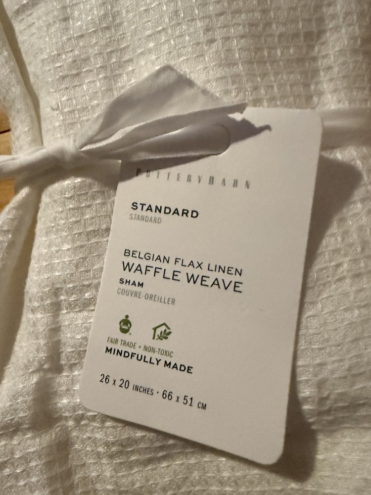 New Pottery Barn Belgian Flax Linen Waffle Weave White Pillow Sham. Standard Size 26”X20” Front 100% Belgian Flax Linen Back 75% Cotton 25% Belgian Flax Linen Machine Washable. Nice & Soft
