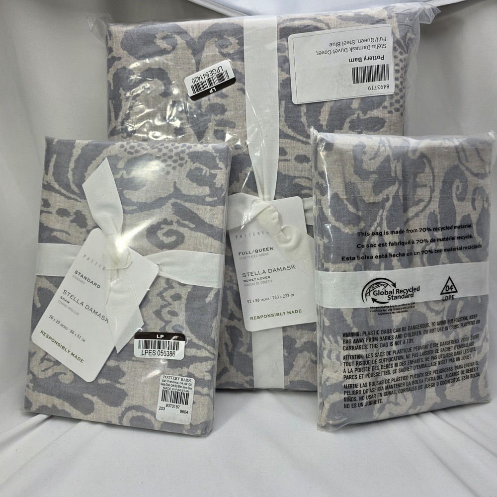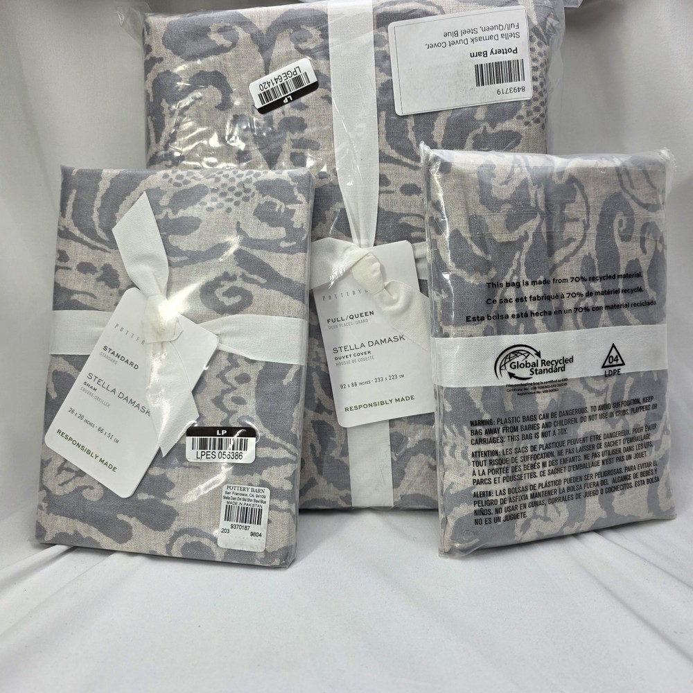 Full queen with 2 standard shams Material: Made of 50% cotton and 50% linen. Secure Design: Duvet features a button closure with inner ties to keep the insert in place Certification and Standards: OEKO-TEX® STANDARD 100 certified, tested for 1000+ harmful substances (14.HUS.42449 HOHENSTEIN HTTI). By choosing our cotton products, you’re supporting our investment in Better Cotton’s mission. Place of Manufacture: Imported. Care Instructions Machine wash in warm water; gentle cycle. Only non-chlorine bleach when needed. Tumble dry on low heat; remove promptly. Warm iron as needed.