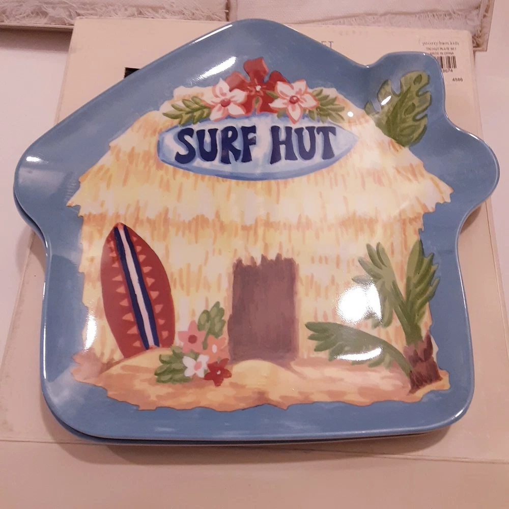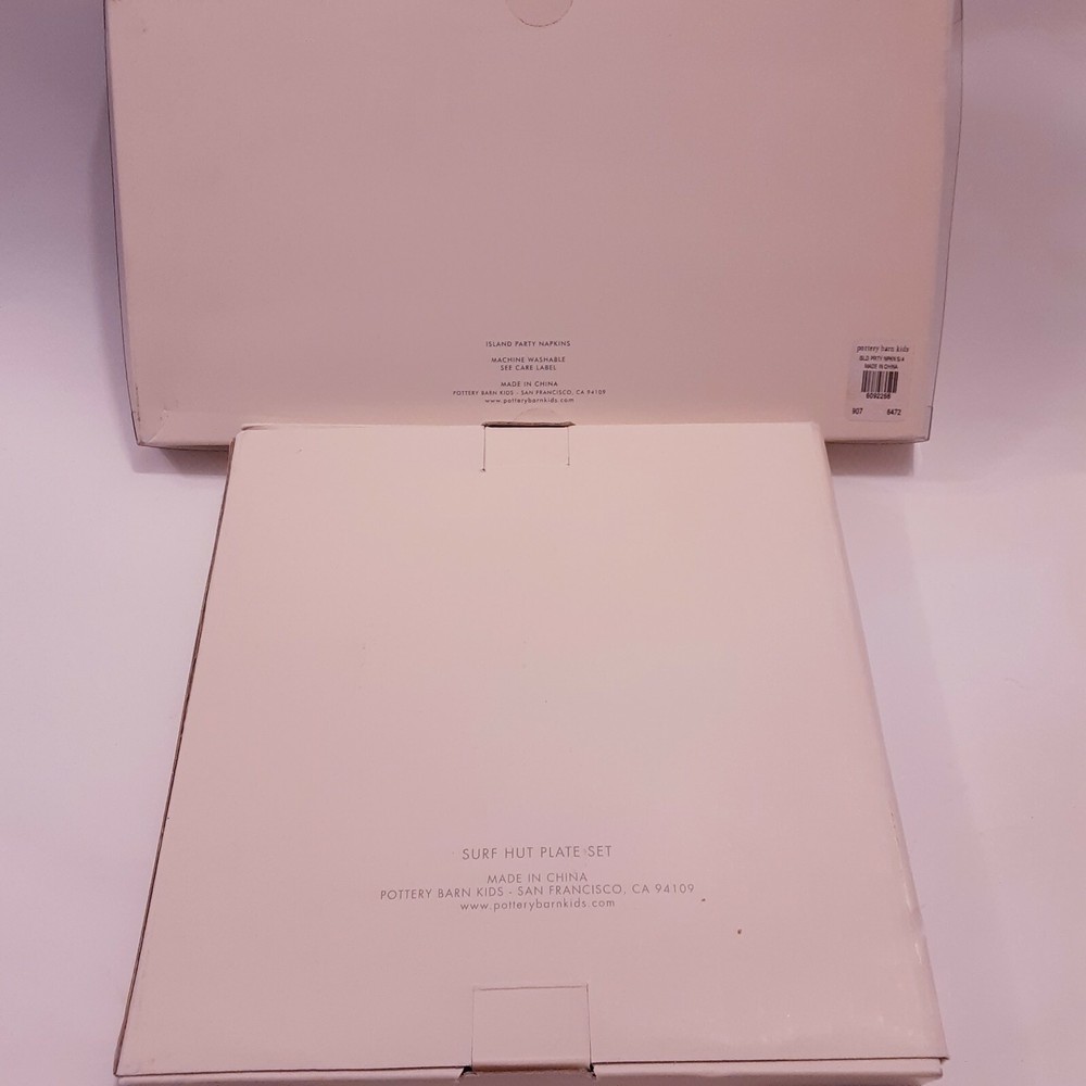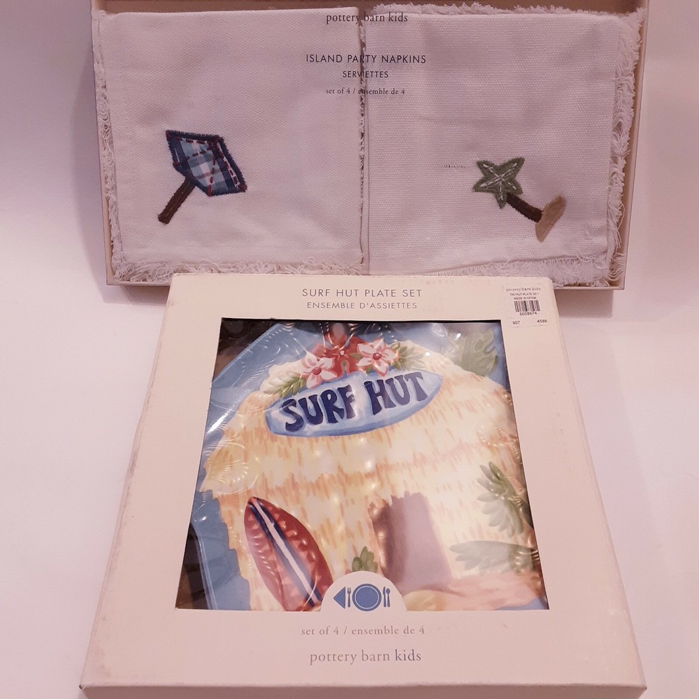NEW Pottery Barn TIKI Surf HUT Island Party Set 4 Plates & 4 Napkins Set Fun Tropical Birthday Party Condition is "New" Prompt Shipping