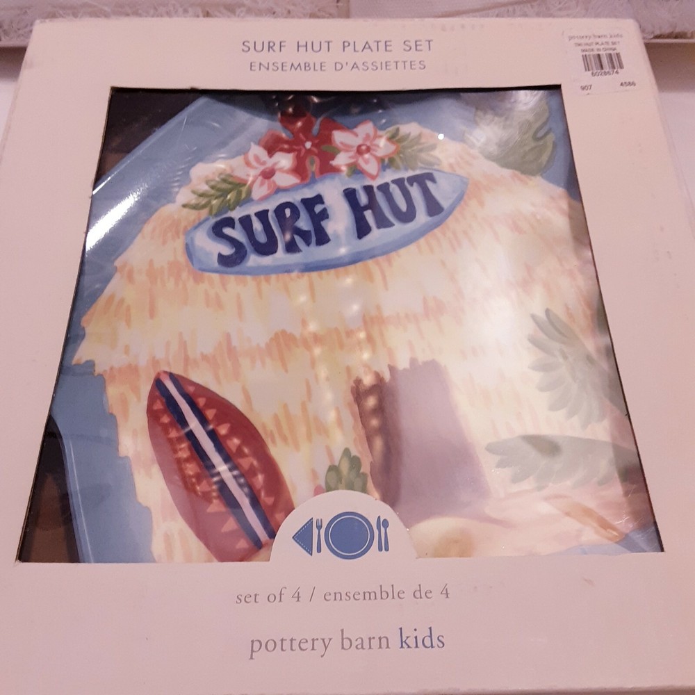 NEW Pottery Barn TIKI Surf HUT Island Party Set 4 Plates & 4 Napkins Set Fun Tropical Birthday Party Condition is "New" Prompt Shipping...