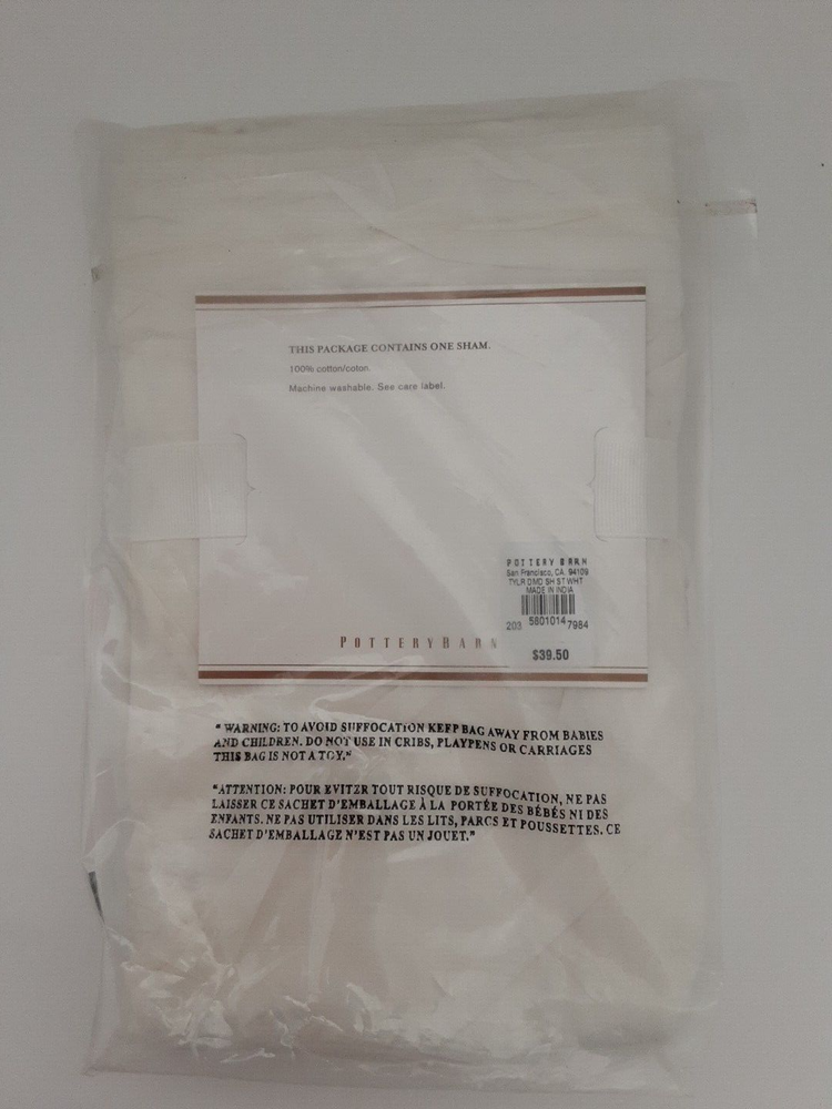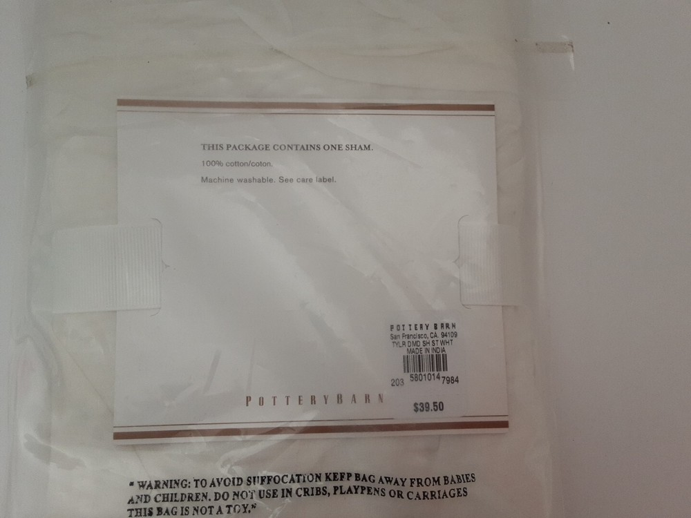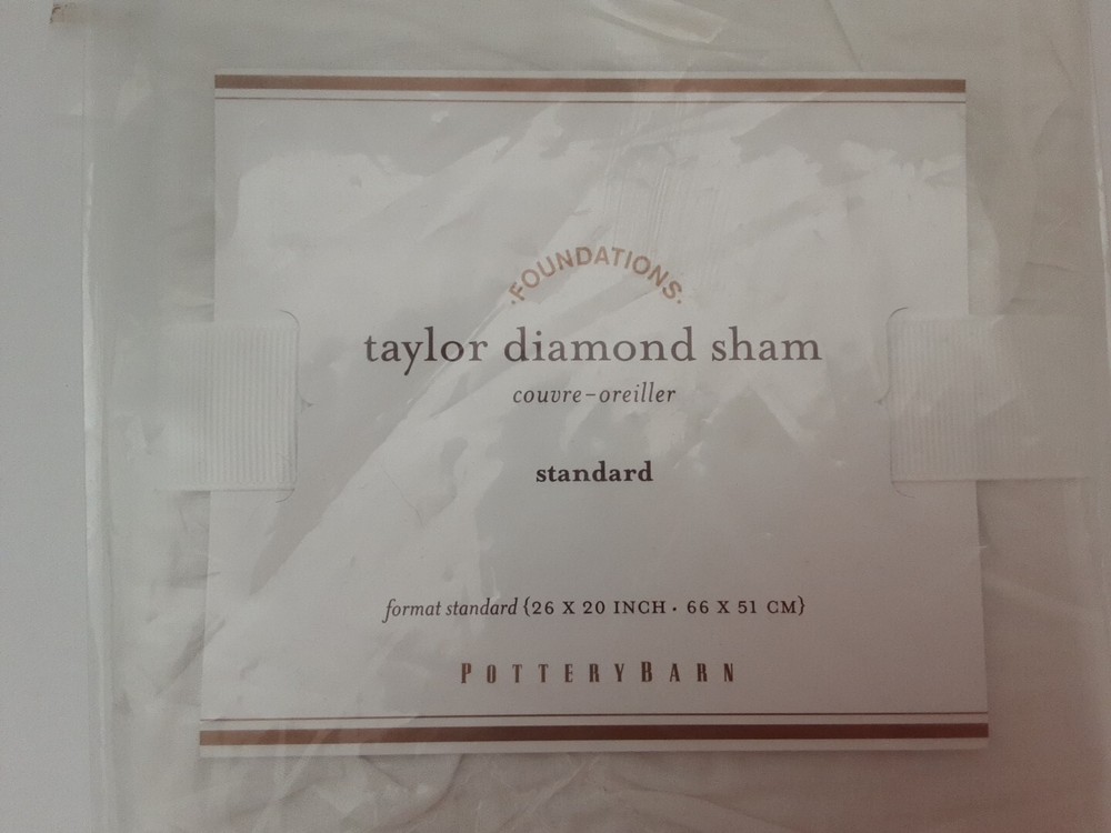 NEW Pottery Barn Taylor Diamond Sham Standard White 26" x 20" Brand new in sealed package